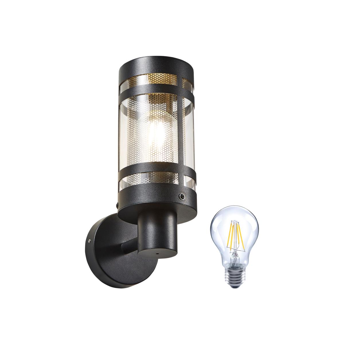 Lantern Wall Light with Silver Mesh and E27 Bulb - Black