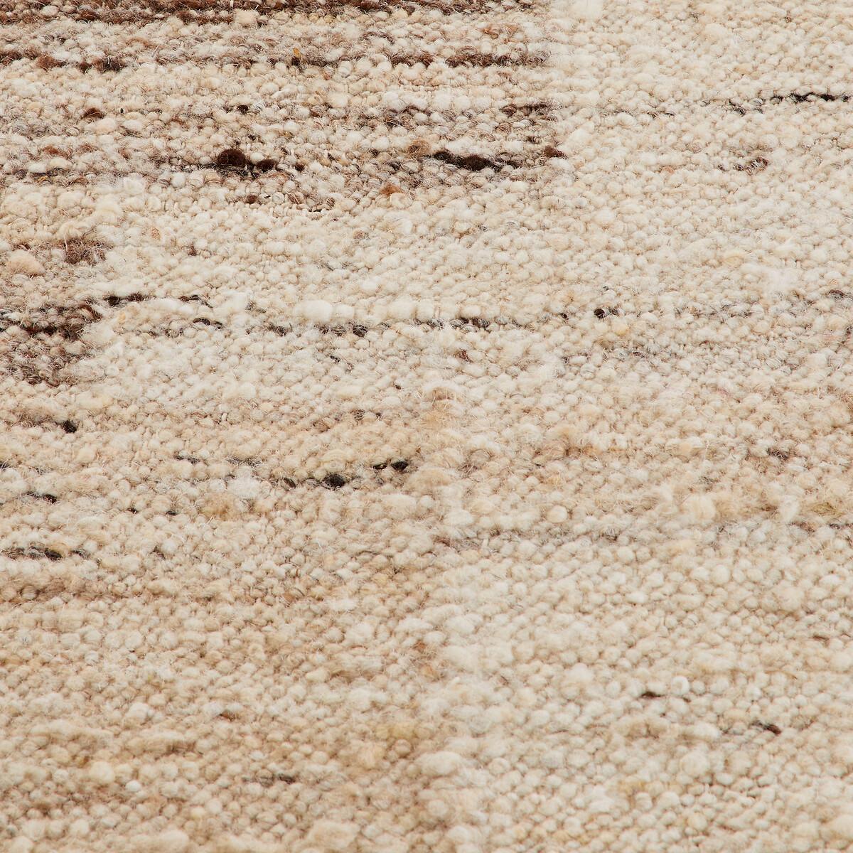 Hand-made, flat-woven and OEKO-TEX® certified, the Laoka rug plays on the effects of materials and tonal shades to create subtle graphic prints and deliver an untreated look that showcases traditional craftsmanship. In wool, it warms the room. And feels cosy underfoot. Product Details • 78% wool, 10% polyester, 9% cotton, 3% viscose • 2100g/m2 • Thickness: 1.5cm/0.5" • Weaving type: manual • Underfloor heating compatible: Yes • Interior Use:Yes • For outdoor use: No. Quality Info • Wool is a warm and comfortable fibre. A wool rug is also an excellent thermal and sound insulator. • Hand-woven, each piece is unique and may have small irregularities that give it its authenticity. Colours and dimensions may vary slightly. Care Instructions • Once unrolled, you must wait a few days for the carpet to return to its initial shape. • To keep the edges flat, roll your mat in the opposite direction. Leave it like this for an hour then put it back flat and place a heavy object on it for 2 days. • New, the carpet may give off an odour which dissipates over time. Ventilate your room regularly to reduce it. • To preserve its appearance, rotate your rug regularly in one direction or the other to minimise localised wear in the same places (due to successive passages), and loss of colour due to regular light exposure. Care Advice • Some materials are very fibrous (such as wool) Wool rugs pill naturally during the first few months: this is a normal for this type of product and is not a defect. Remove the excess fibres by hand where possible, do not use a vacuum cleaner with a rotating brush as this can pull and tear the fibres. The pilling will improve over time. • For maintenance, we advise you to vacuum it very little the first month and then to vacuum it without rubbing too much always without using the brush. • Compatible with robot vacuum cleaners: No • Remove stains immediately with a clean, damp cloth. • Dry clean recommended. Dimensions • Width 120 x Length 170cm • Width 160 x Length 230cm • Width 200 x Length 290cm • OEKO-TEX® Standard 100. Standard 100 certification by OEKO-TEX® tests textile products for harmful substances via an independent, international label.