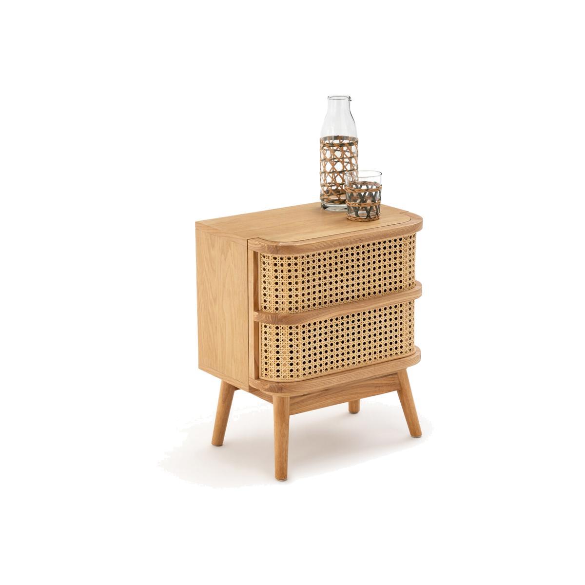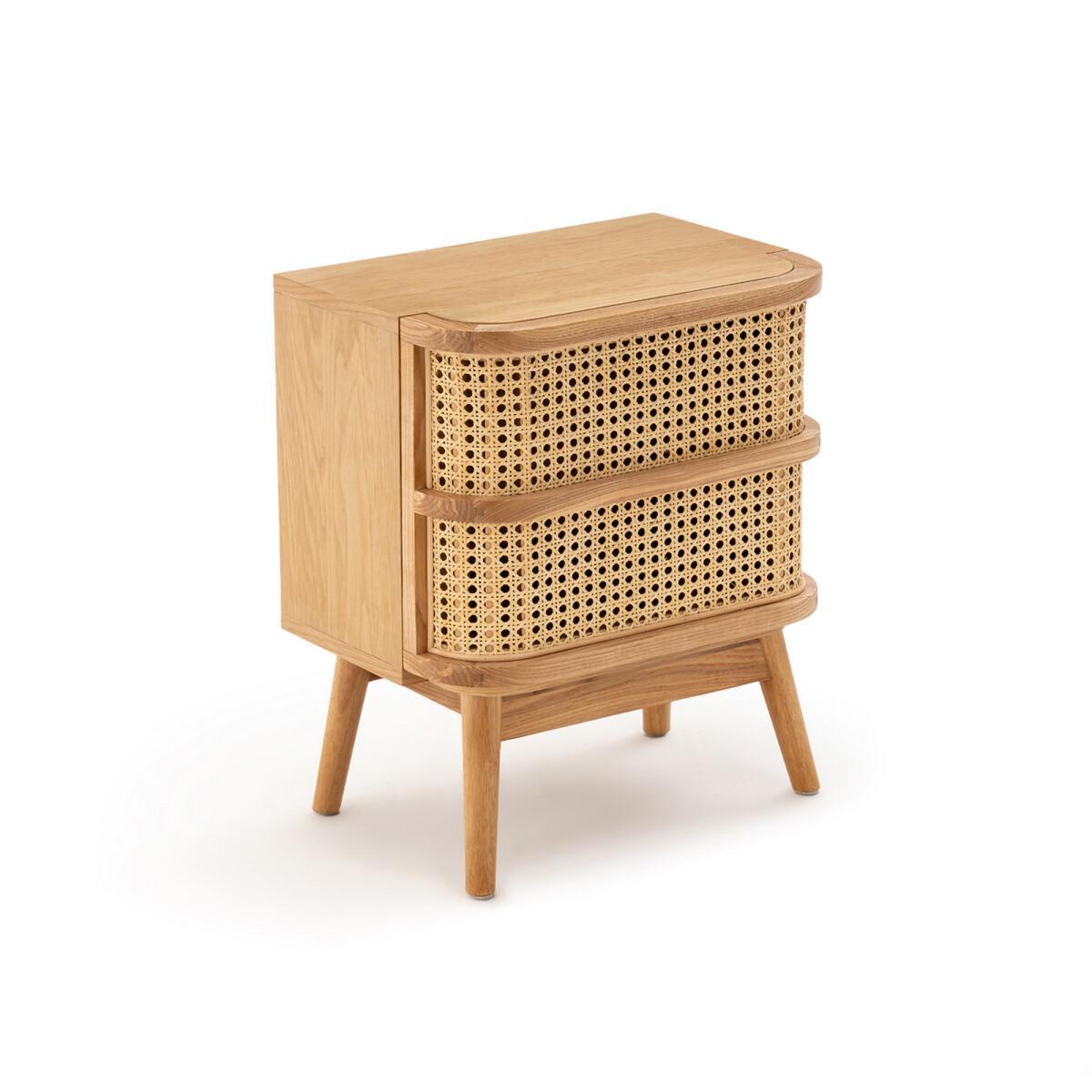 The Laora 1-drawer cane bedside table combines wood and rattan cane front, well in line with the trend. It will look great in your home.