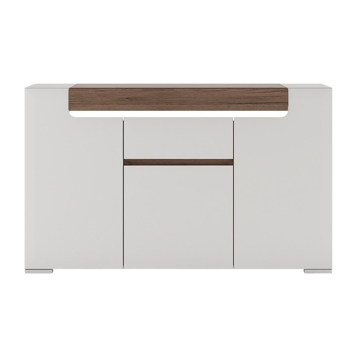 A smart and contemporary addition to any home, the Laos Three Door One Drawer Sideboard with Flex Light will provide a wonderful storage solution with a modern twist. Beautifully styled with a wide design, the sturdy frame comes complete with one drawer and three cupboards, ideal for storing everything from paperwork, spare keys and dinnerware. The sideboard features soft close doors and drawers, internal LED lighting and adjustable shelves, while the sleek finish in white high gloss is complemented with an oak trim to effortlessly suit both modern and traditional decor.
