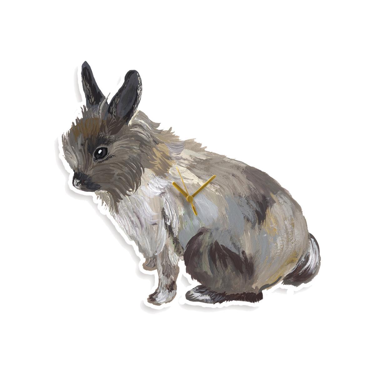 This clock'' Rabbit'' evokes the illustrations of old natural history books for children.