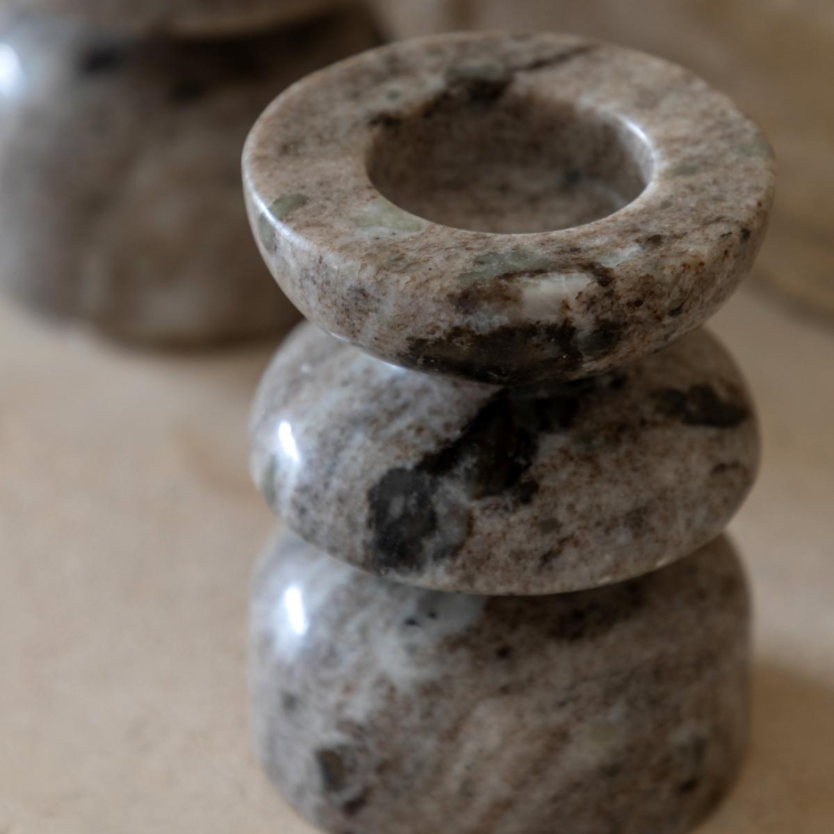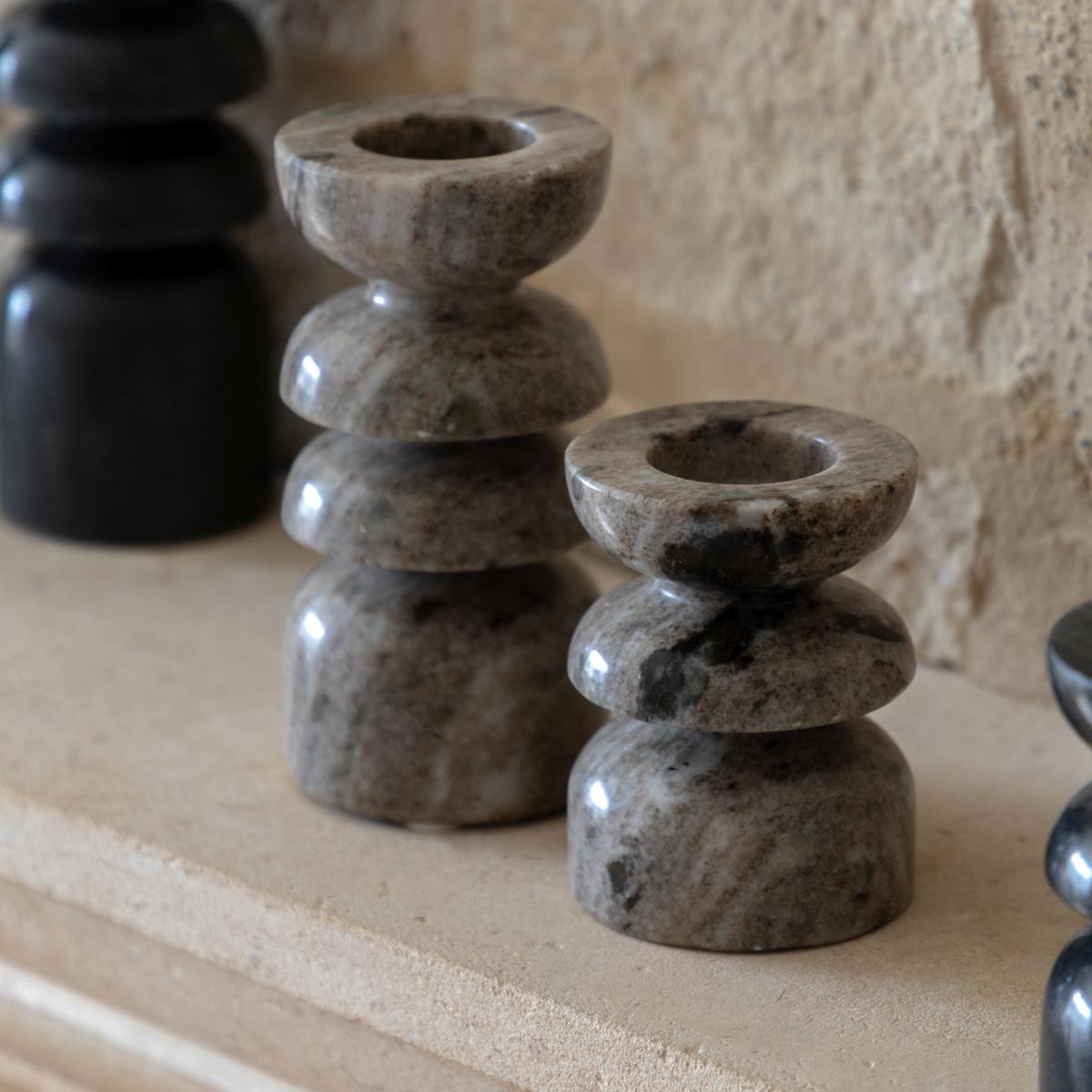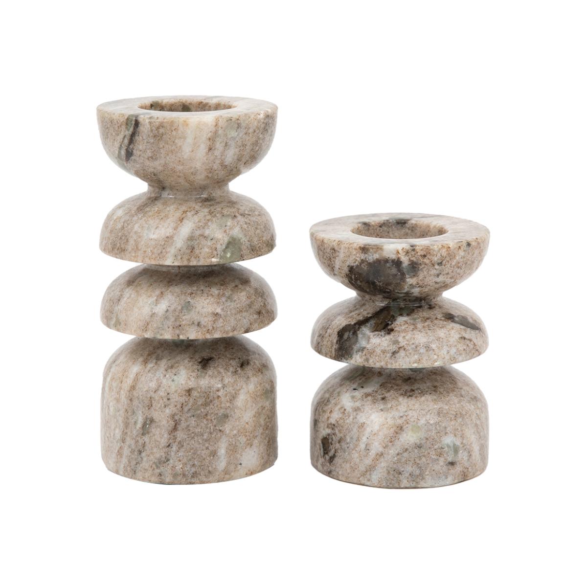 Lapis Marble Candlestick in Sandstone, Set of 2