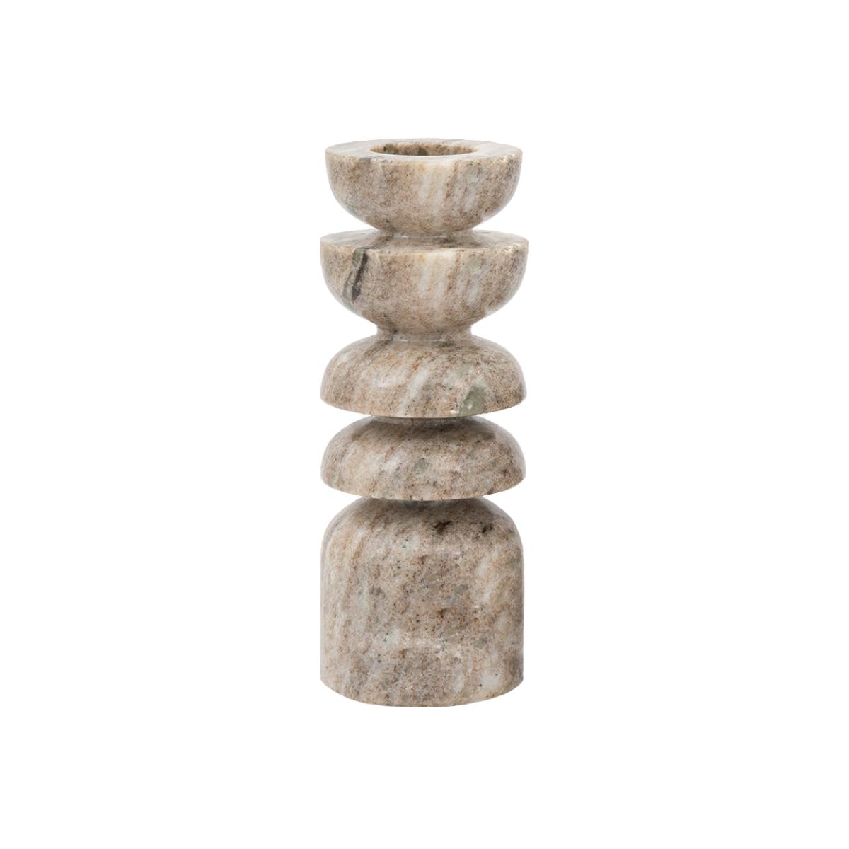 I love this stone candlestick because of its sculptural, minimalist form and neutral sandstone tone, making it versatile across many interiors. It works especially well in contemporary or Scandinavian settings, where its simple shapes add texture and warmth without overwhelming the space. For styling, I’d suggest pairing it with other natural materials like wood or linen, and placing it on a side table or mantle to create a subtle focal point. It’s also great for layering - try grouping it with smaller candles or different heights to add visual interest while keeping the overall look understated.
