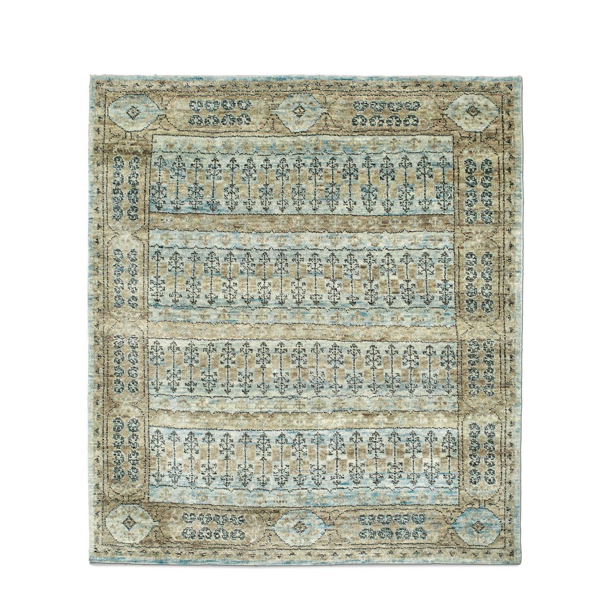 The Lapis Rug is hand-knotted from hand-spun yarn, using a Persian technique introduced around 2,500 years ago. It creates a well-loved and lived-in antique look. The blue dye brings a modern appeal to the traditional design and is applied by hand.
