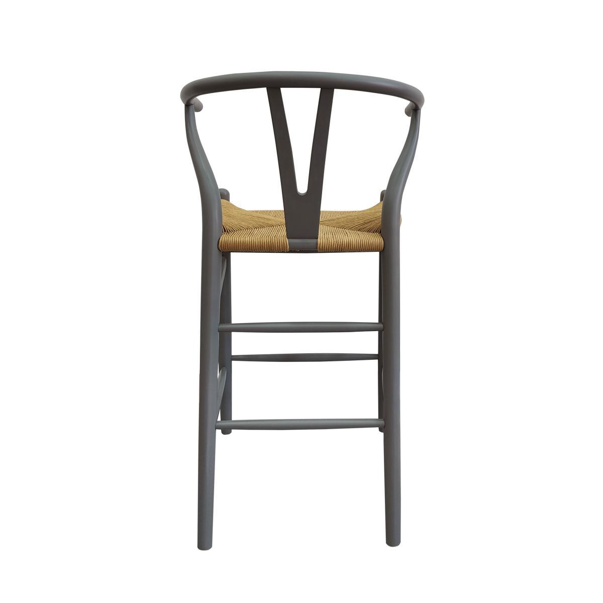 I love this grey barstool for its clean, contemporary silhouette that suits both modern and industrial interiors. Its muted tone makes it versatile enough to blend seamlessly into colour schemes from neutral palettes to more vibrant setups. The natural woven seat adds warmth and texture, which can prevent a space from feeling too stark. Practical styling tips include pairing it with a laminated or wooden counter for a casual, cafe vibe or combining it with a sleek marble or concrete surface for a stylish, urban look. Its slightly minimalist design also works well in open-plan kitchens, breakfast bars, or even as extra seating in a cosy lounge nook.