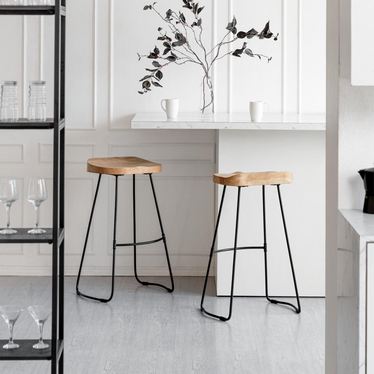From morning breakfasts to Friday night drinks, this bar stool is here to make things stylish. Sleek metal legs combine with natural mango wood to bring design-focused beauty to your homes. Comfortable and right on trend, it embodies modern curves. The saddle seat and sculptural powder-coated legs, complete with a footrest are ergonomic details that make it a perfect option for guests to perch on as you prepare your signature dish. Handmade by skilled craftsmen, it is a winning addition to your kitchen and bar counters.