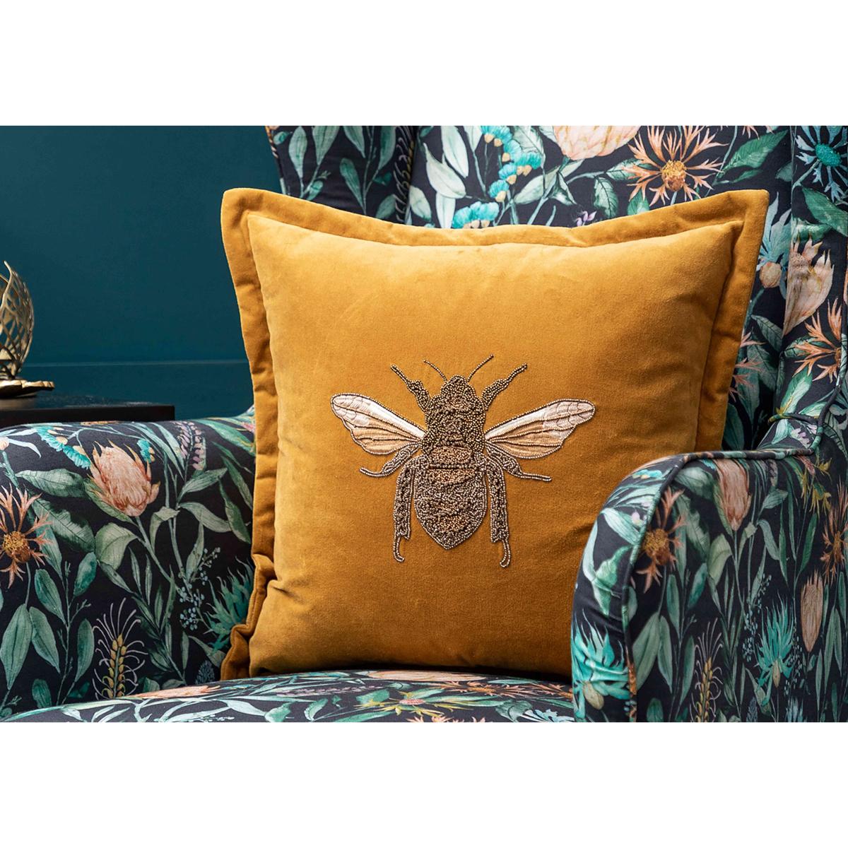 The exquisite Lula cushion complements every style of room – simply choose your favourite shade. Gorgeous velvet meets hand embroidery and stunning bee embellishment. Why you'll love it Bee-autiful embellishment. The ultimate touch of luxury. It’s feather-filled so it’s luxuriously soft inside and out. Embroidered by hand. Sourced and designed in India. In a wide choice of colours to suit any decor. What you need to know 100% polyester. 100% feather filling. Zip closure for easy cleaning and filling adjustments. Indoor use only. To maintain cushion plumpness, remove cover and plump cushion interior regularly. Dimensions Height: 50 cm (20 in). Width: 50 cm (20 in).