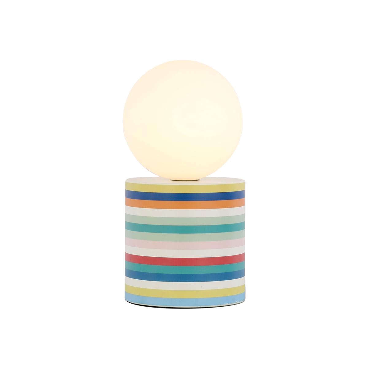 I love this lamp for its playful yet versatile design - the colourful stripes give it a fun vibe that can brighten up a variety of spaces. It’s particularly great in casual living rooms, kids’ bedrooms, or even to add a pop of colour to a neutral scheme. The globe-style light makes for a soft, ambient glow, while the multicoloured base adds visual interest without overwhelming the decor. For styling, try pairing it with simple, understated accessories to let its colour palette shine, or coordinate it with other colourful accents for a lively, coordinated look. It’s also a practical choice on side tables or bedside units, bringing both style and function to your space.