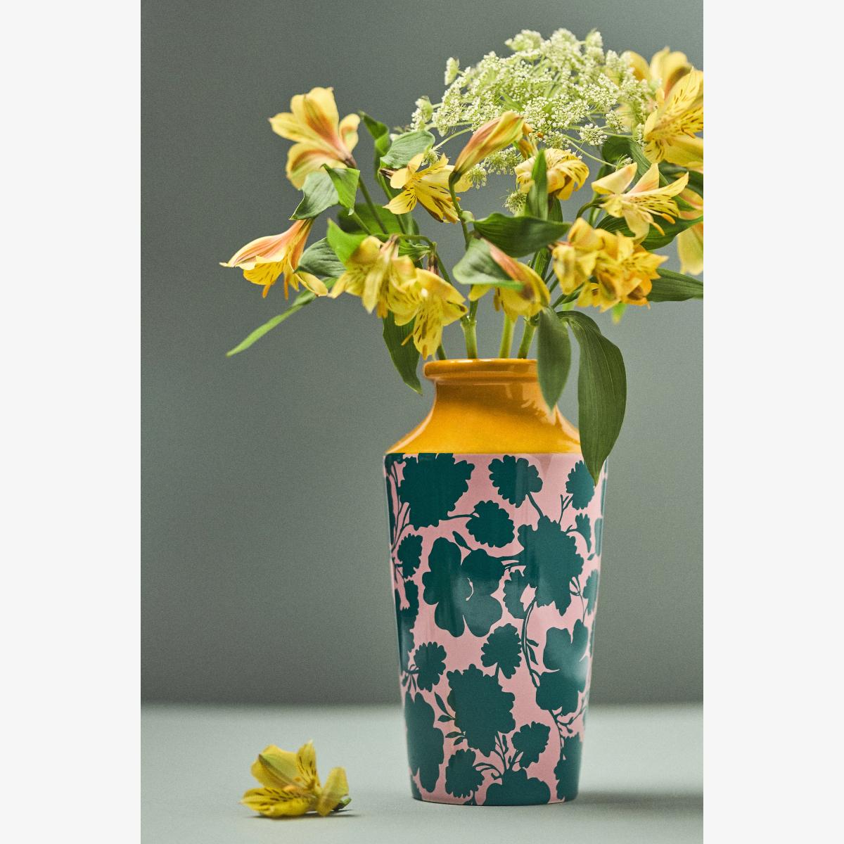 I love this vase for its vibrant, patterned design which instantly adds character to any space. It works especially well in contemporary or eclectic interiors, where its bold colour palette can be highlighted with minimalistic surroundings. Practical styling tips include using it as a standalone statement piece or pairing it with simpler, monochrome vessels for a curated look. It’s versatile enough to hold fresh flowers or dried arrangements, making it a functional yet decorative addition to a console table, sideboard, or windowsill. Overall, it’s a great way to inject colour and personality into your home setup.