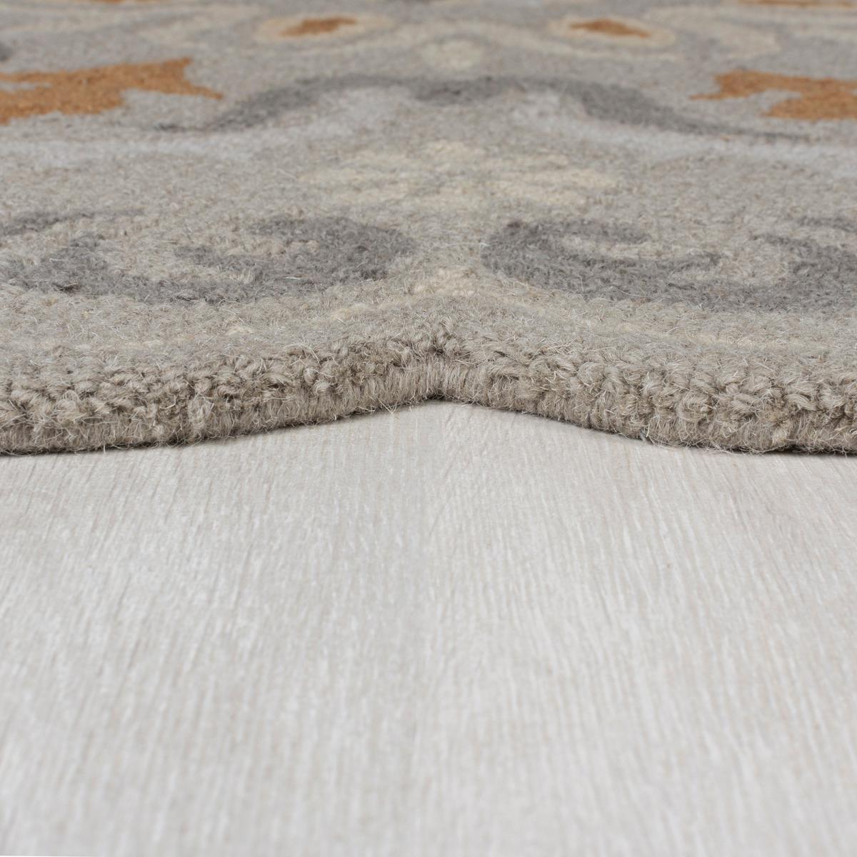 The Larch Wool Scallop Circle Rug injects a traditional look to any corner of your space. Pairing a unique scallop edge with floral motifs for a classic look underfoot. Neutral tones help create a calming feel. Hand-tufted by skilled rug artisans, the Larch Wool Scallop Circle Rug has a 100% wool pile for a warm and soft texture, the scallop edging gives a new take on the classic circle rug. We love using the Larch Wool Scallop Circle Rug to create a cosy corner to escape to. Wool is a natural fibre and may shed for 6-12 months as it settles in. Simply vac up any loose fluff. Safe for use on a heated floor. Use a suction type vacuum - rotating brushes may damage this rug. Re-roll your rug pile out for 24 hours to reduce curling. Regularly turn to ensure even wear. An anti-slip mat will help prevent slipping. Blot spills immediately with a clean, dry white cloth. Do not rub. Do not place this rug near an open fire. Please do not leave children or infants unattended.
