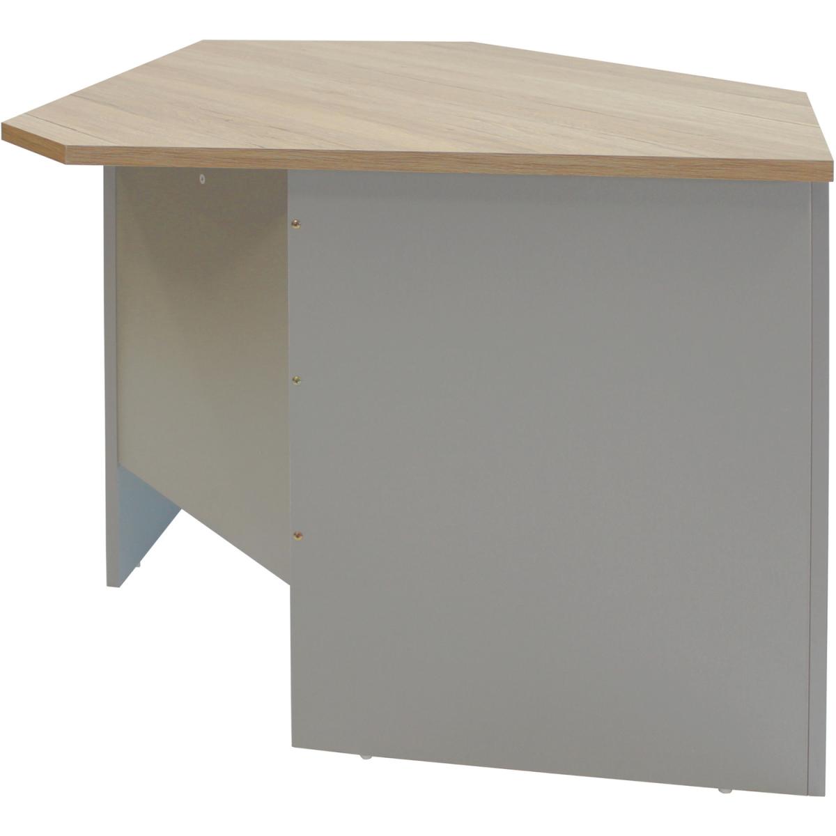 An attractive, modern styled, ready-to-assemble, practical corner desk suitable for home office environments, manufactured in a stylish Light Grey Painted Effect with Light Oak Effect Tops or a Smoked Oak Effect and finished in a robust, easy-clean surface resistant material to withstand the rigours of everyday life. The desk features include 25mm thick tops with durable PVC edging, 18mm thick back panels for rigidity and strength together with a 40mm top overhang at the back to take into consideration skirting boards and help to create a fitted look. Adjustable foot levellers are utilised to allow for uneven floors. The desk, which has plenty of legroom, provides a great working space for laptops, computers, writing and drawing.
