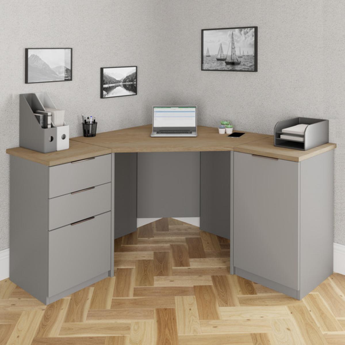 The Lardale corner desk is a practical choice for maximising space in home offices and small work areas. I love how its neutral grey finish makes it versatile enough to suit a variety of interior styles, from modern minimalism to Scandi-inspired setups. Its corner design offers efficient use of space while providing a generous surface for work essentials. The two cabinets add valuable storage, helping to keep clutter tucked away and maintaining a tidy surface. For styling, consider adding a small desk lamp, some organisers, or a low-profile plant on the surface to soften the look. It works particularly well in contemporary or neutral interiors but can be easily styled with colourful accessories for a personalised touch.