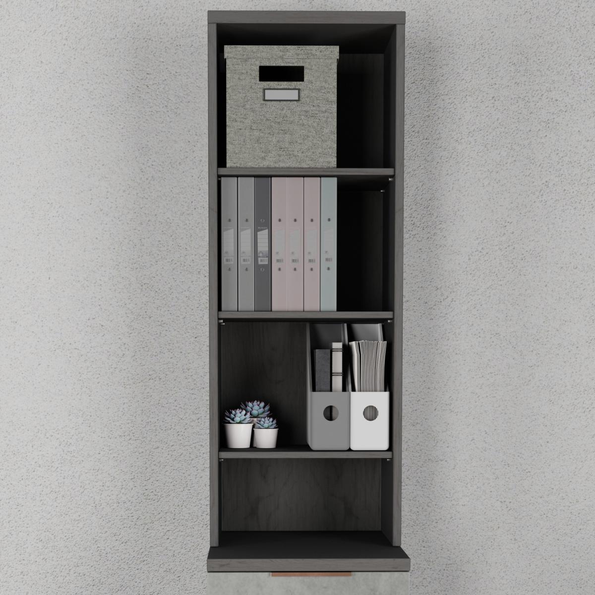 An attractive, modern styled, ready to assemble Surface Bookcase for use only in conjunction with cabinets from the product. Manufactured in a stylish Light Grey Painted Effect with Light Oak Effect Tops or a Smoked Oak Effect, and finished in a robust, easy-clean surface resistant material to withstand the rigors of everyday life. The surface bookcase features include 25mm thick tops with durable PVC edging, an 18mm thick back panel for rigidity and strength together with adjustable shelves providing practical storage options. Attention to detail is visible with features that include the use of felt at the base of the bookcase. The surface bookcase is for use with the additional products within this collection, to provide an innovative solution to working from home, creating a stylish, professional workspace for all the family to enjoy.