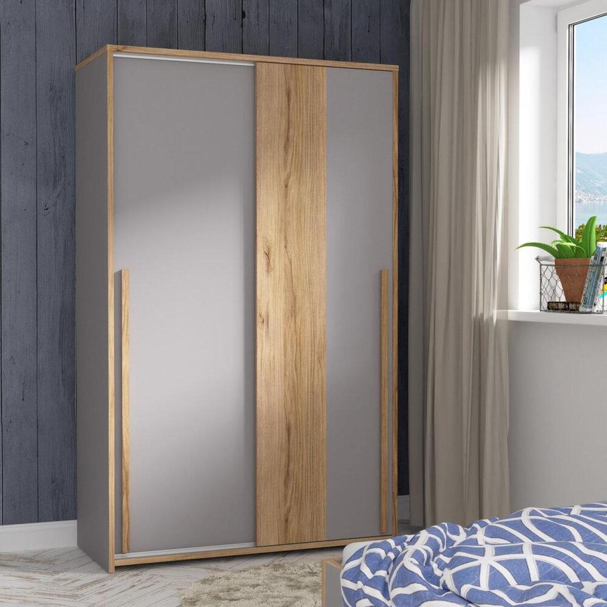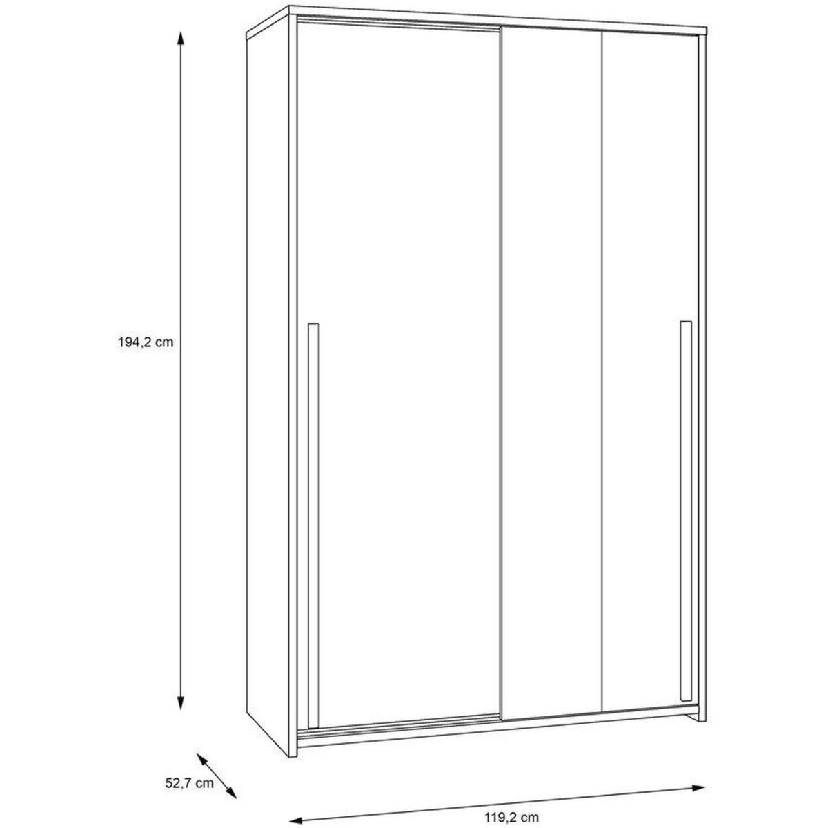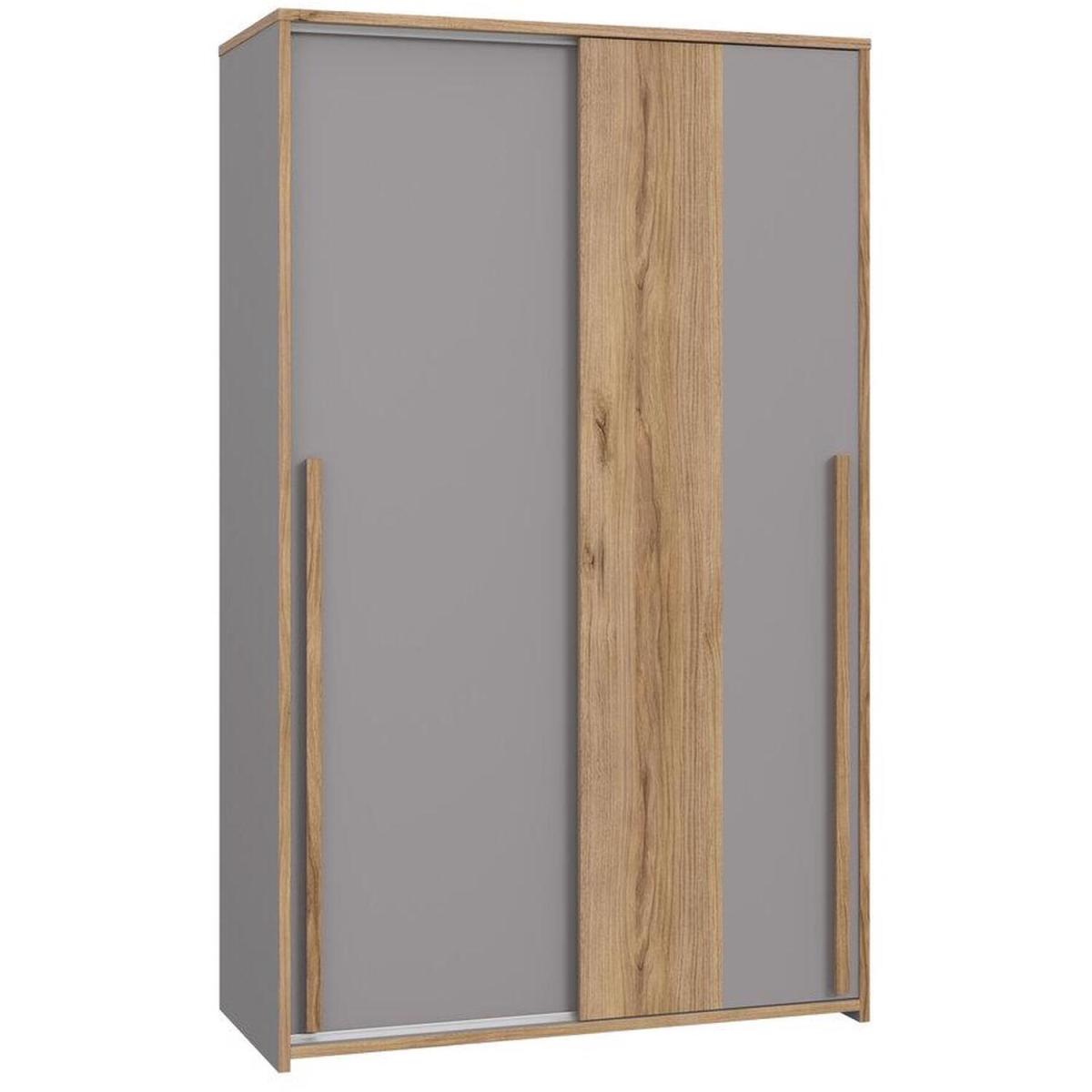With ample storage space this modern styled wardrobe provides a beautiful storage solution. With an elegant matt grey finish with Catania Oak details offers a neutral feel that will blend with any style of room seamlessly. Hidden behind the 2 large sliding doors are 2 separate compartments. One consists of a large overhead storage shelf and integrated storage rail. The second consists of 4 heavy duty storage shelves.