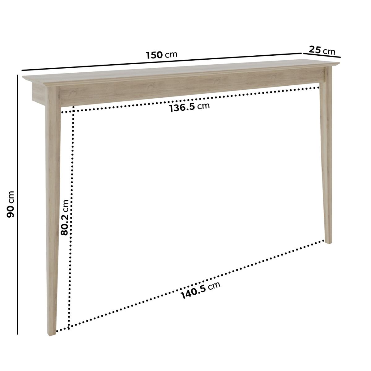 Features we love Wide slimline wall-mounted console table. Unfinished ready for you to prime and paint. Its compact design slots neatly into small spaces. Perfect for displaying items on the slim tabletop. Mounts to the wall for a secure and sturdy fit All about me. This Ava console table makes the perfect space-saving solution for any room in your home short on space. Make a stylish statement and display photographs and ornamental accessories on the sleek tabletop without compromising on space. The wood is unfinished too so you personalise however you wish; all you have to do is prime it and paint it. Wall fixings are included so you can rest assured it’ll stay in place. Need to know. Dimensions. W150 x D25 x H90 cm Weight. 9kg Max load weight on top. 14kg Colour. Neutral Finish. Natural – ready to paint Material. MDF and rubberwood Fittings included. Yes wall mounting brackets Assembly required. Yes.