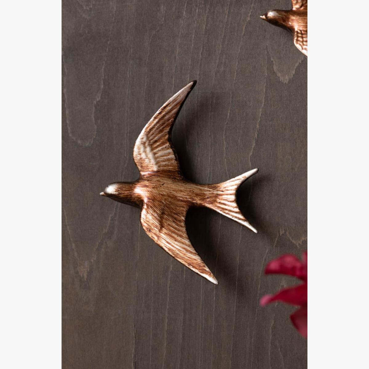 Meet the Large Antique-Copper Swallow Wall Decoration – the showstopper your home accessories have been waiting for. With its stunning antiqued copper finish and graceful swooping shape, this beauty brings warmth, depth and a touch of old-world charm to your wall décor ideas for the bedroom. It’s elegant, dramatic, and effortlessly cool – the kind of piece that makes a room feel instantly more stylish. Hang it solo for a bold statement or pair it with other wall art to create that perfectly layered look. Either way, this swallow adds movement, texture, and a whole lot of personality wherever it lands. Gleaming, graceful, and gloriously eye-catching – this bird has serious wow factor. - Large Antique-Copper Swallow Wall Decoration - Measures: L12.5cm x W4.5cm x H13.5cm - Materials: Resin