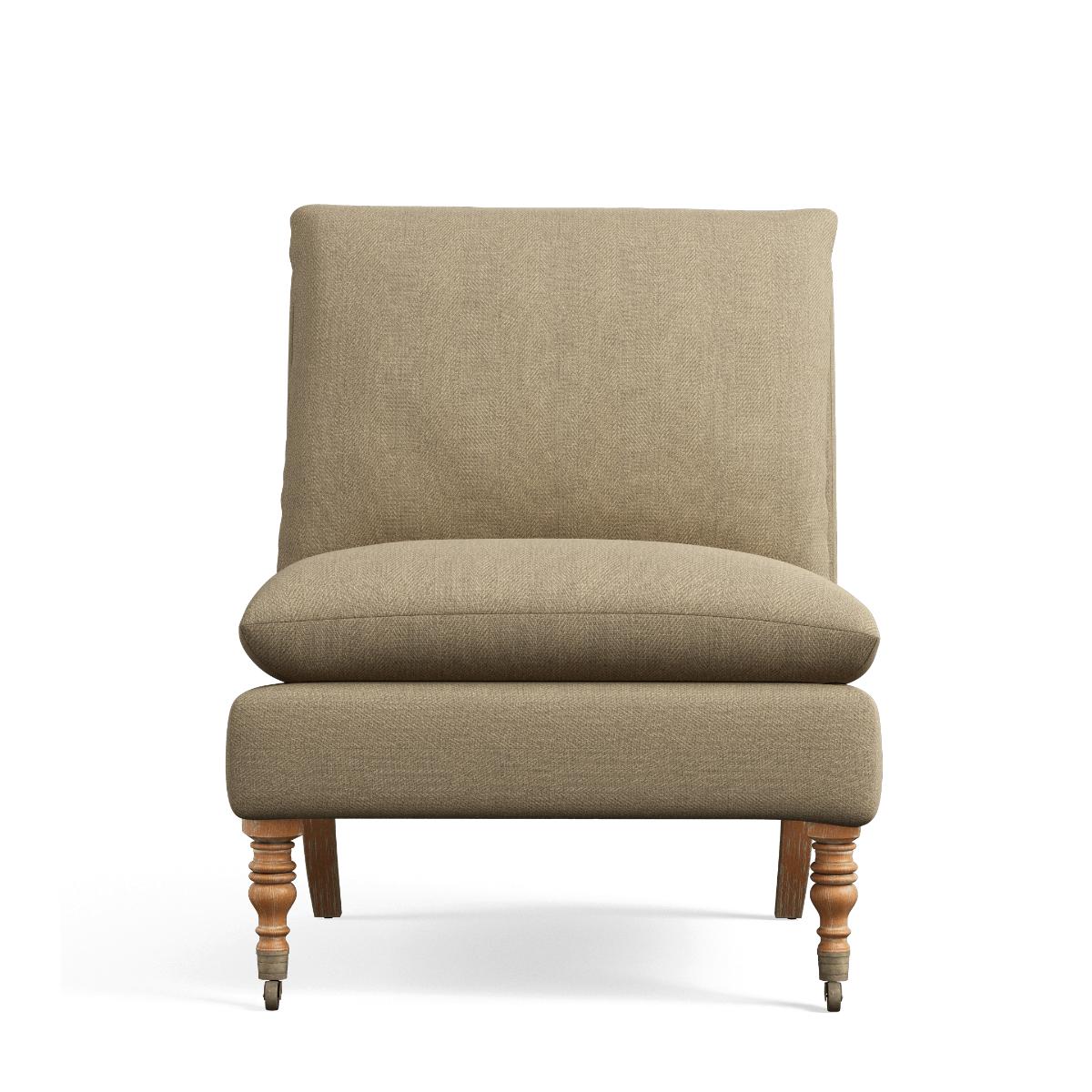 The Apadana is the perfect occasional chair; it can be used instead of an armchair or be styled in pairs to form a small sofa. Joining the range is this super-sized version in a wonderfully neutral wild oat linen. Brass castors and turned legs elevate its minimal design while a foam-filled seat and back cushions ensure exceptional comfort. The legs are removable and will be attached upon delivery. Thanks to a classic design and versatile colour, it will complement schemes both modern and traditional.