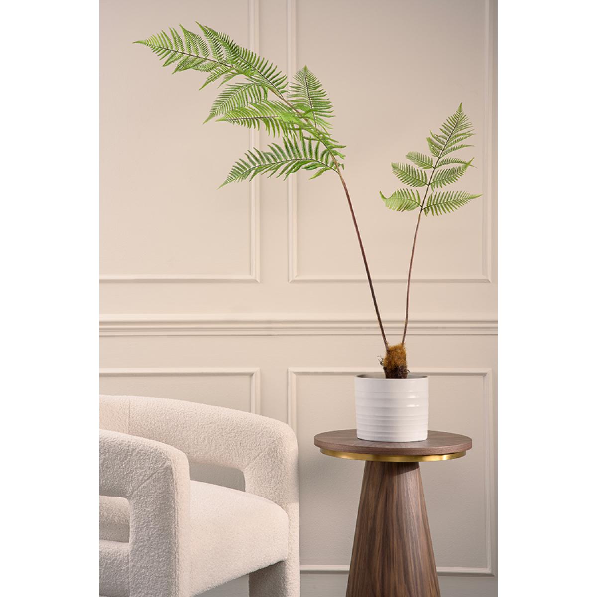Elegant two-stemmed fern plant. Realistic-looking high-quality reproduction. Supplied securely fixed into a black plastic base. Leaves can be easily repositioned as desired.