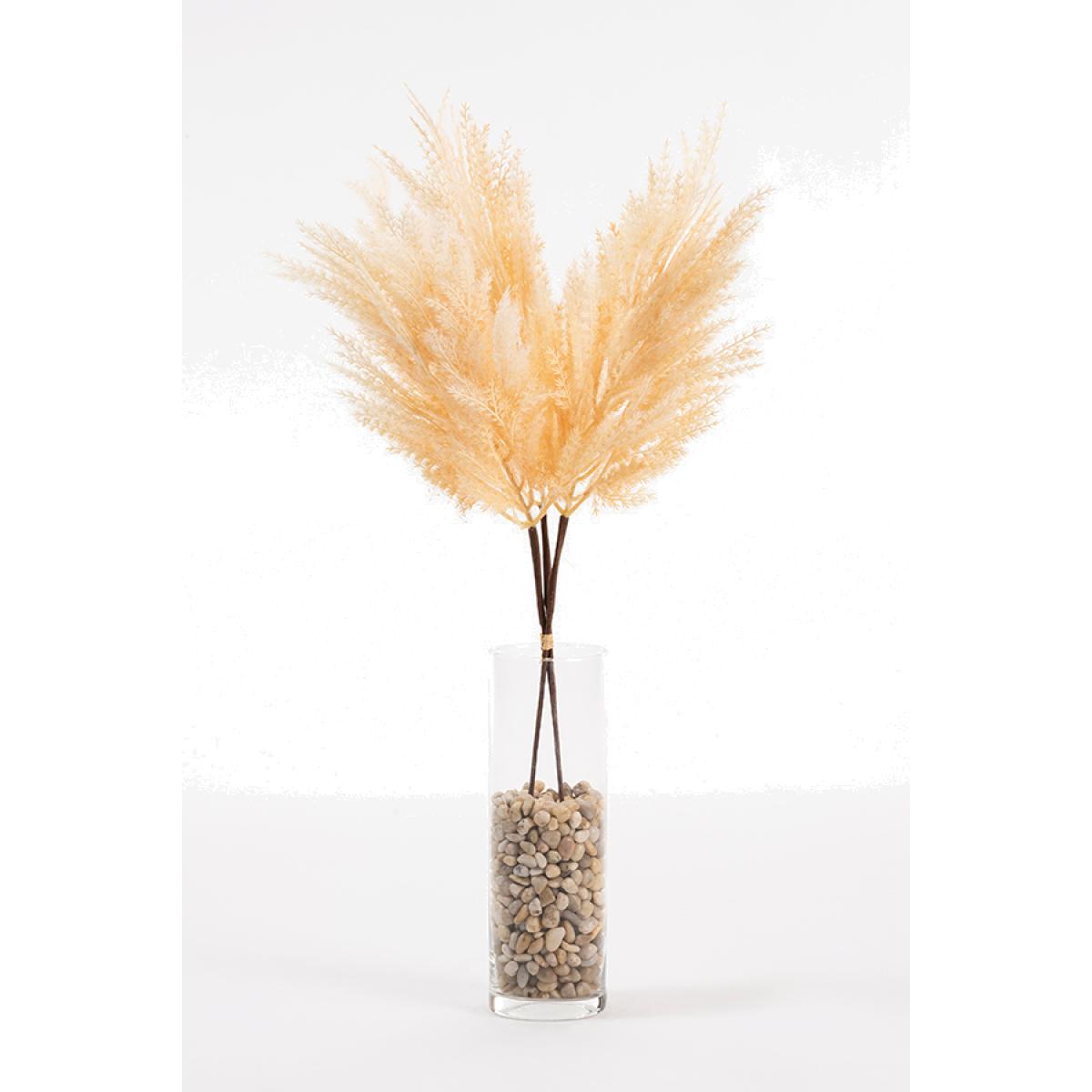 A bunch of three large artificial Pampas Stems. Realistic-looking high-quality reproduction. Stems can be easily repositioned or trimmed as desired. Vase and pebbles are for display purposes only and are not included.