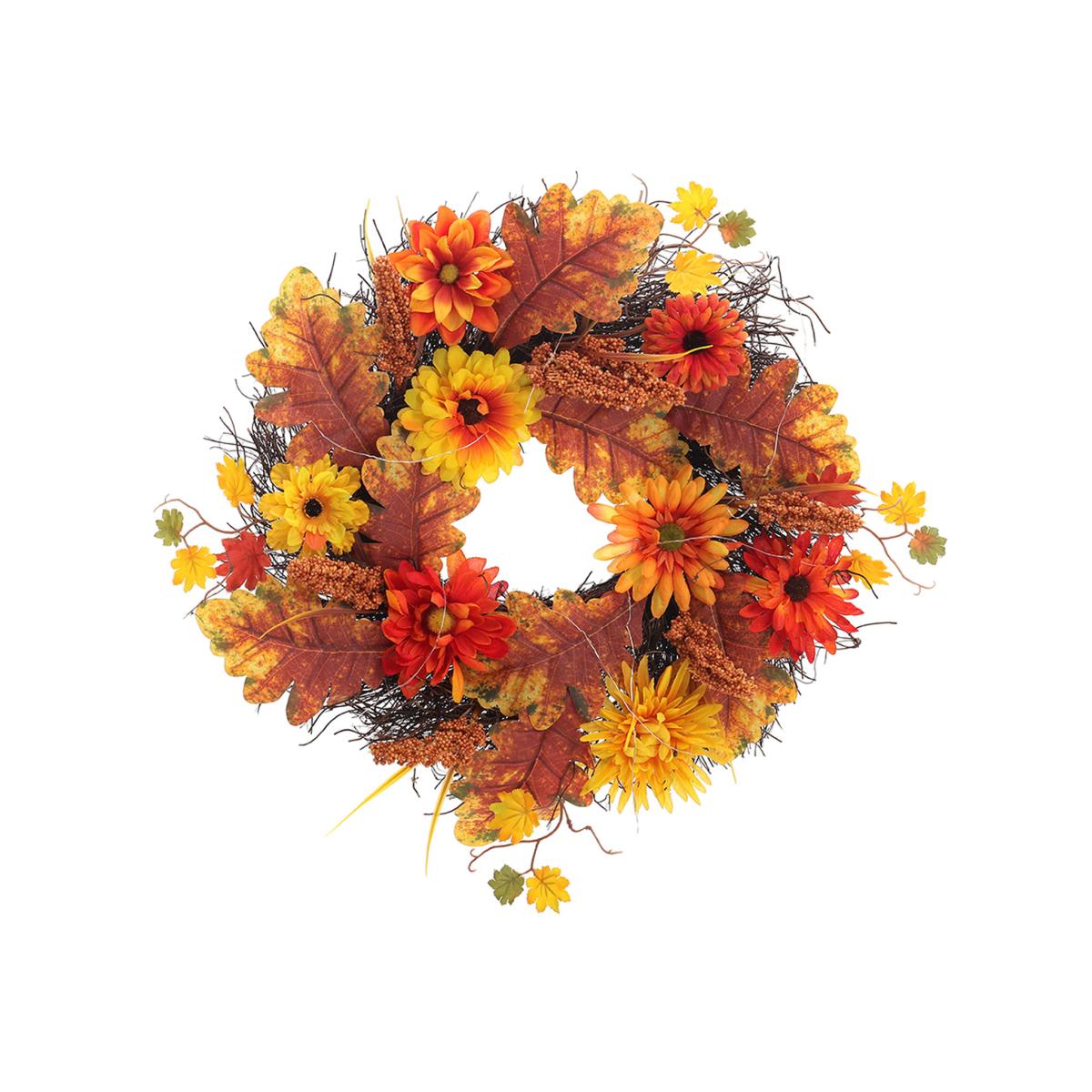 Large Autumn Daisy Maple Leaf Wreath Hanging Decoration - Orange