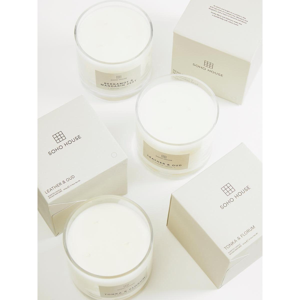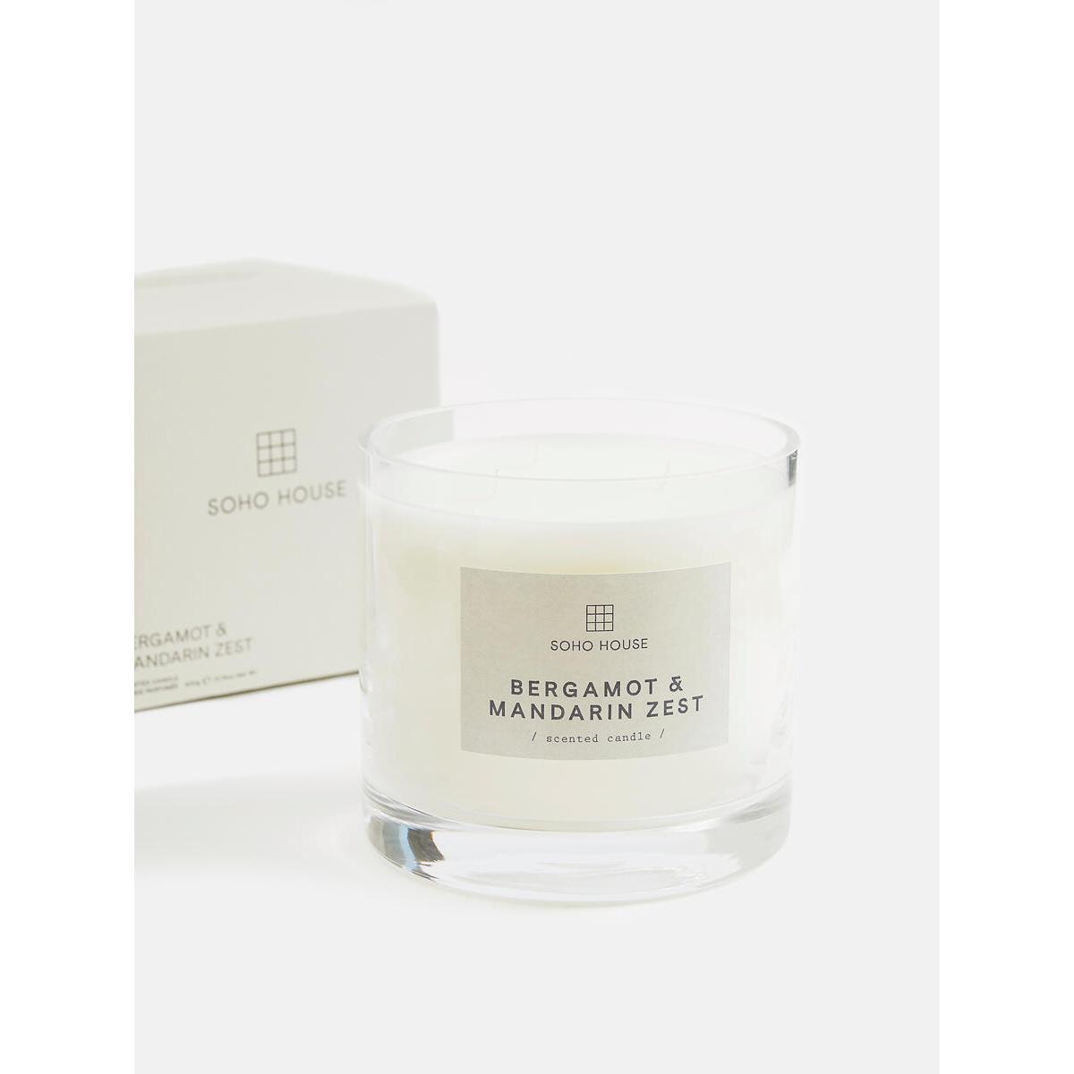 Inspired by mornings overlooking the Mediterranean Sea at theterrace in Little Beach House Barcelona, this candle blends freshcitrus notes of Bergamot, Lime and Mandarin with Jasmine, Neroli,and Smoky Musk. Each candle is hand-poured in England using a blendof mineral and vegetable wax to provide a clean burn andlong-lasting scent. Scent notes. Top: Lime. Middle: Bergamot. Base: Oakmoss. Large three-wick candle with Bergamot and Mandarin Zestfragrance. Hand-poured in England. Vegan-friendly blend of mineral and vegetable wax. Approximate burn time: 70 hours. Inspired by Little Beach House Barcelona.