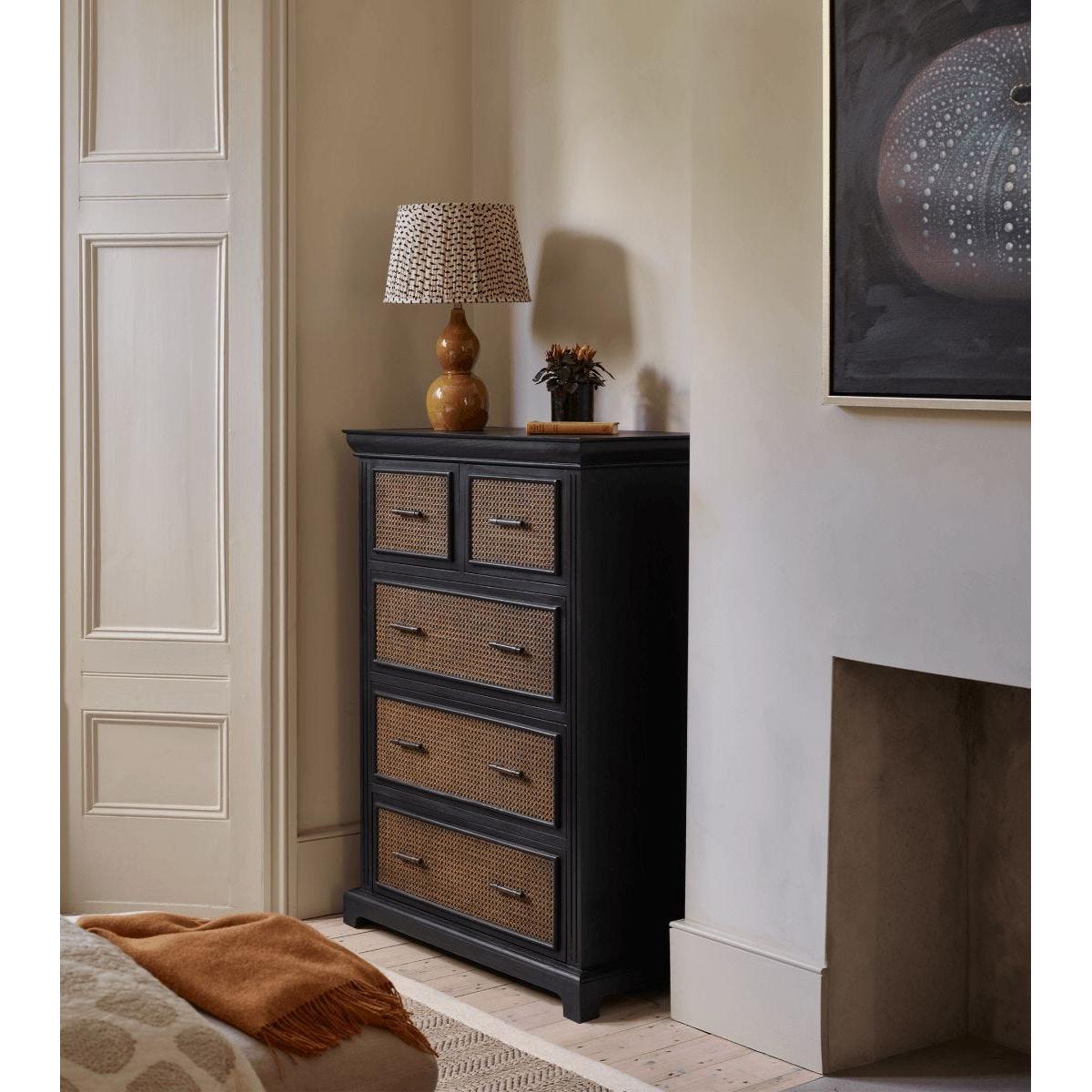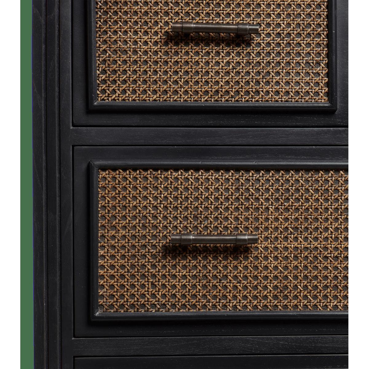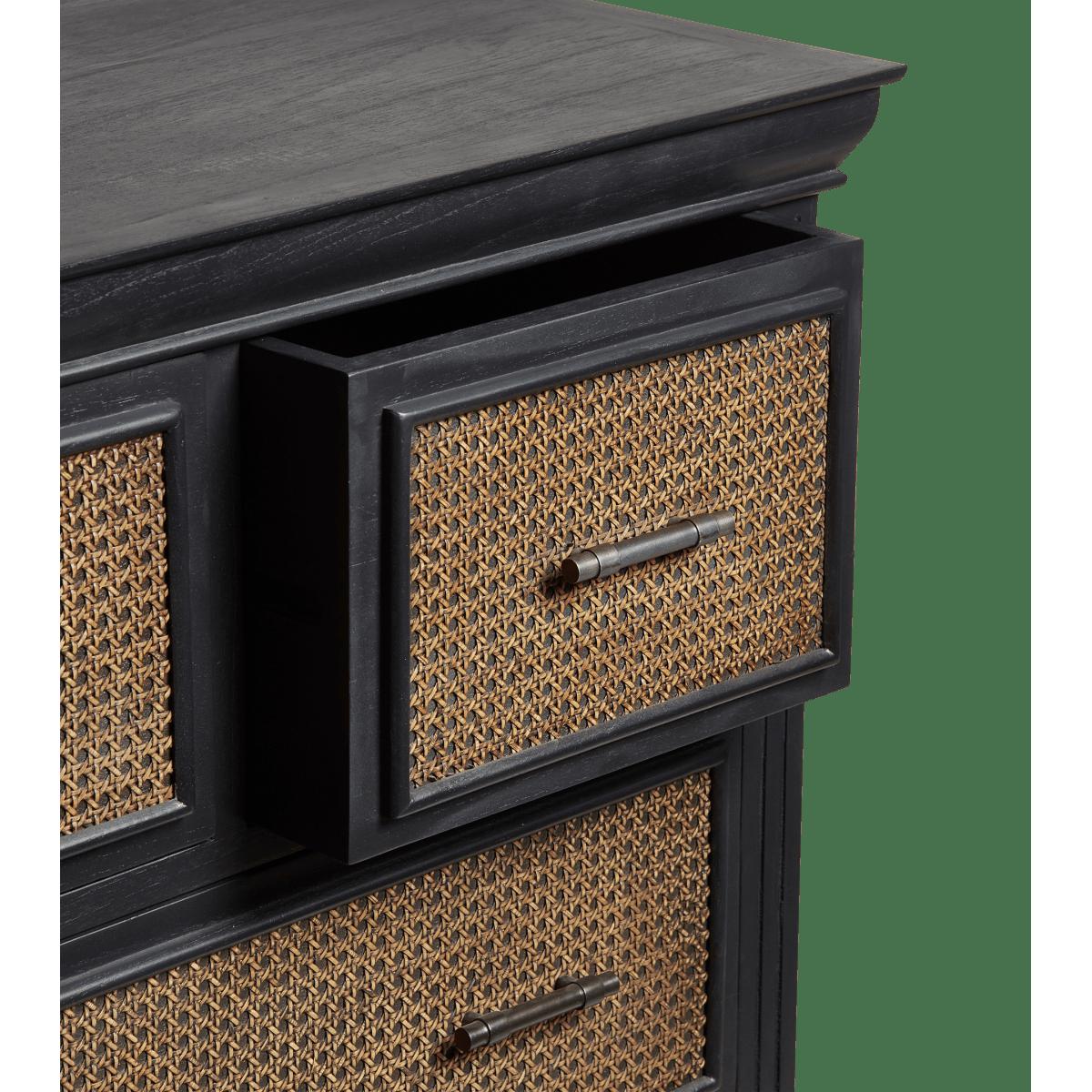 Nodding to the traditional style of the South Asian countries where you'll find the wood it's crafted from, this large chest of drawers features a smart blend of painted bayur wood and rattan. Housing two smaller drawers at the top and three large drawers below, it makes for a striking storage option in any room.