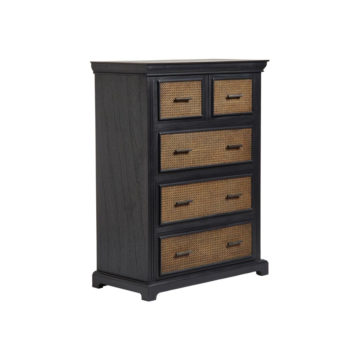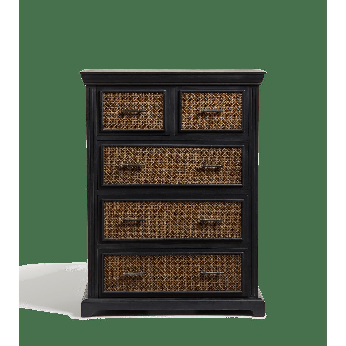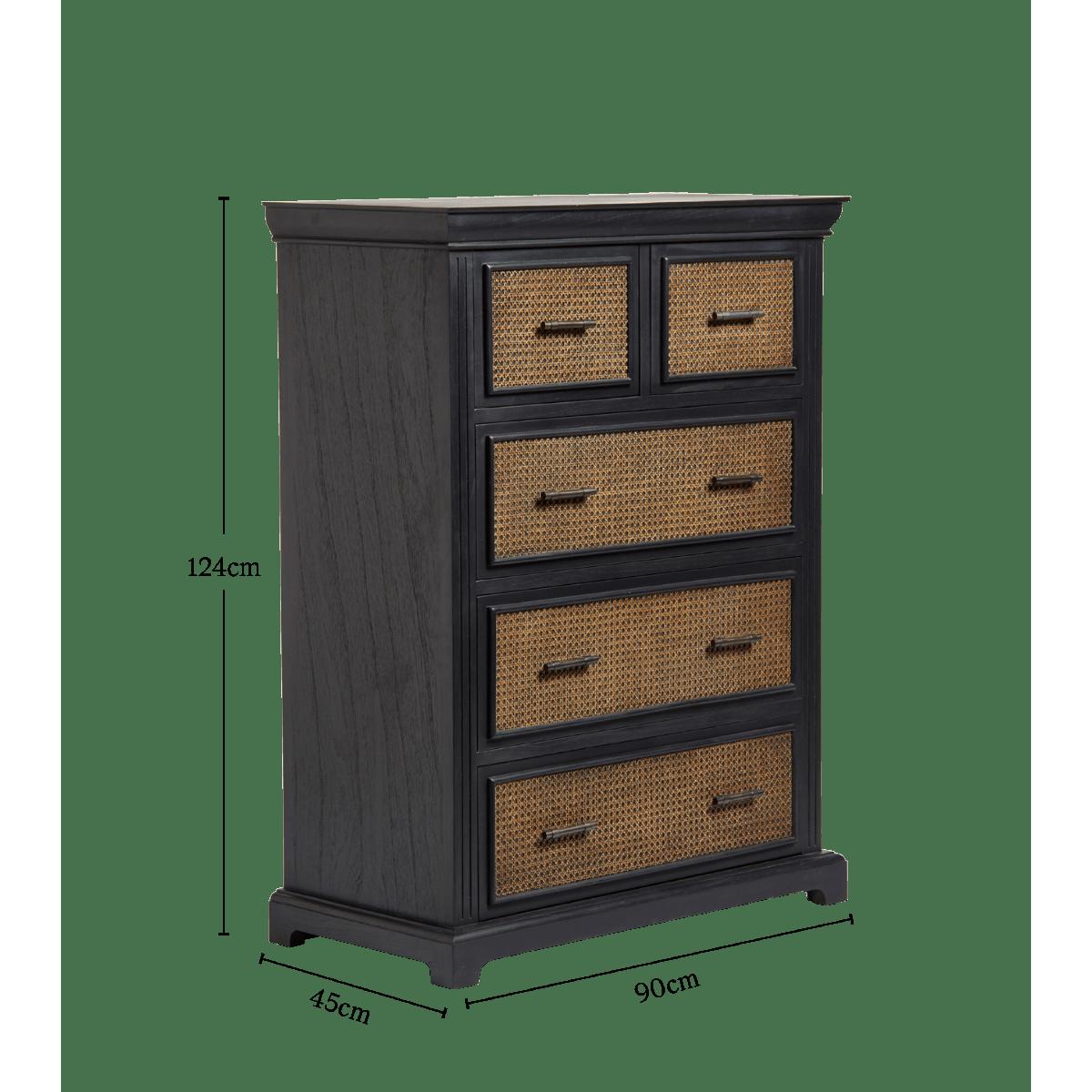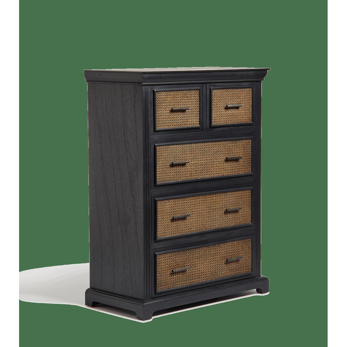 Nodding to the traditional style of the South Asian countries where you'll find the wood it's crafted from, this large chest of drawers features a smart blend of painted bayur wood and rattan. Housing two smaller drawers at the top and three large drawers below, it makes for a striking storage option in any room.