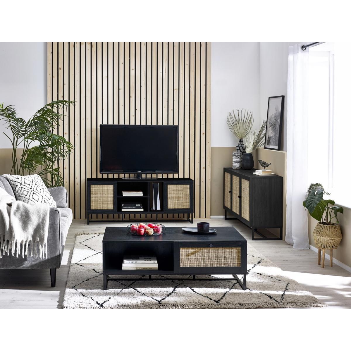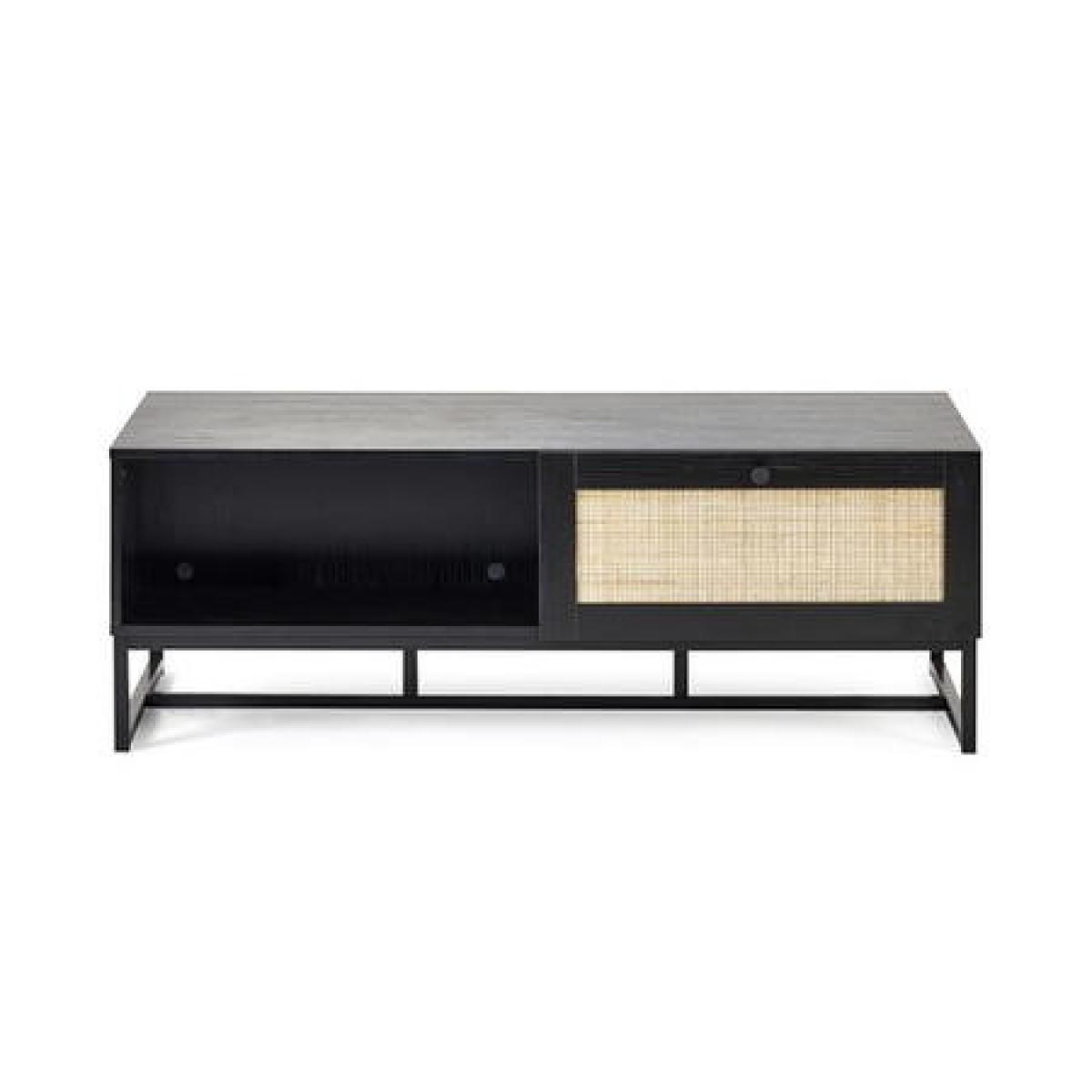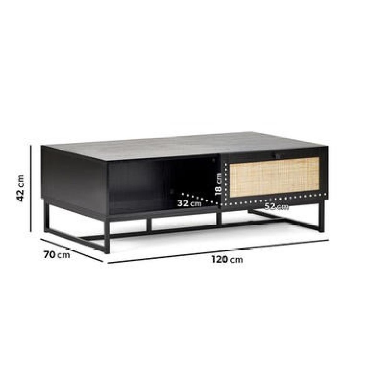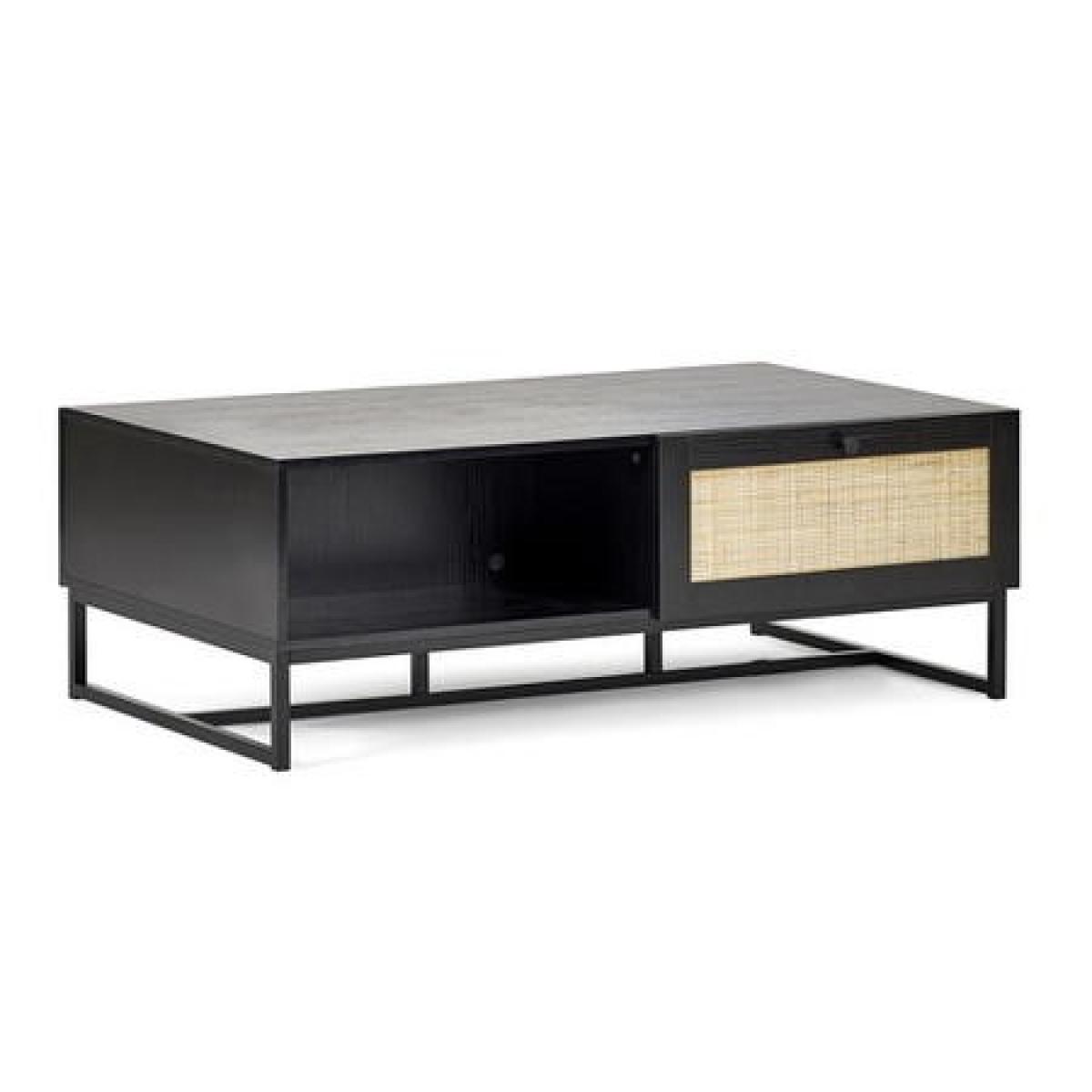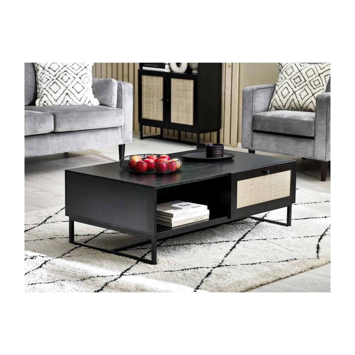 Large Black Coffee Table with Rattan Drawer - Padstow