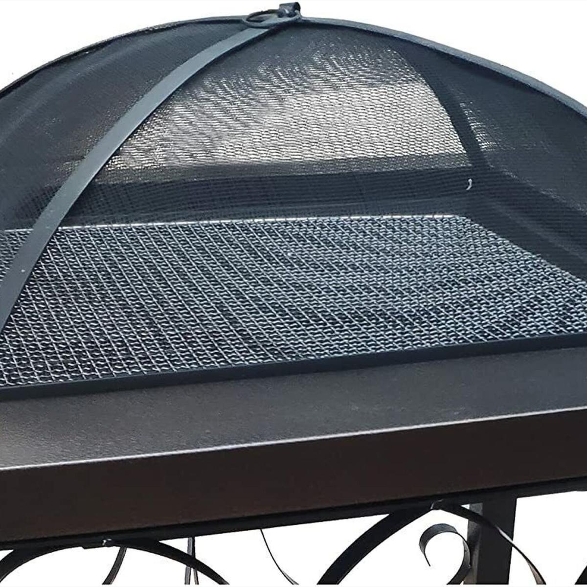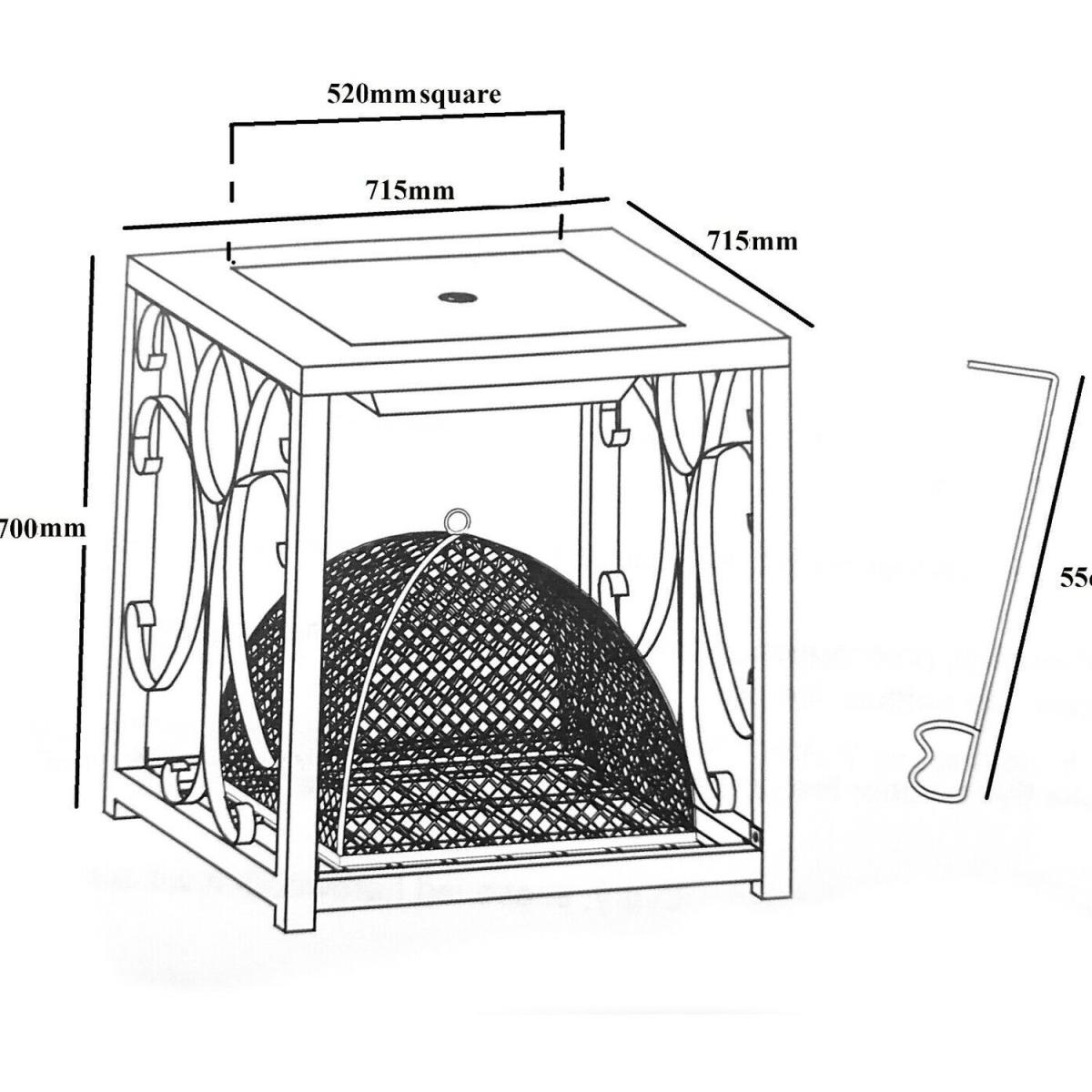 Use this BBQ brazier as a patio heater / log burner during the cool evenings and nights, keep warm while you chat to friends while BBQing your favourite snacks. For outdoor use only. Square with a deep dish design & a fireproof safety mesh, you can enjoy this fire pit in any garden - outdoor spaces. The legs are sturdy, providing stability and support to make sure they are safe and secure. Being made from steel makes this fire pit hard wearing, long lasting and weather resistant. Finished with a tarnished bronze effect for a stylish contemporary look.