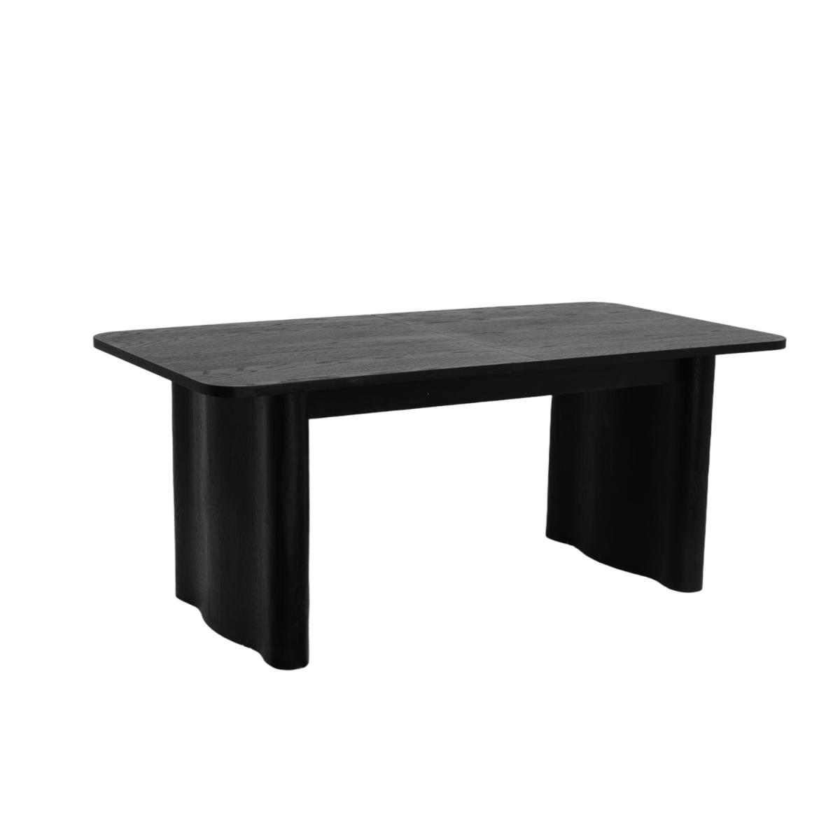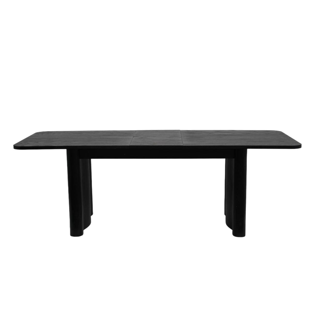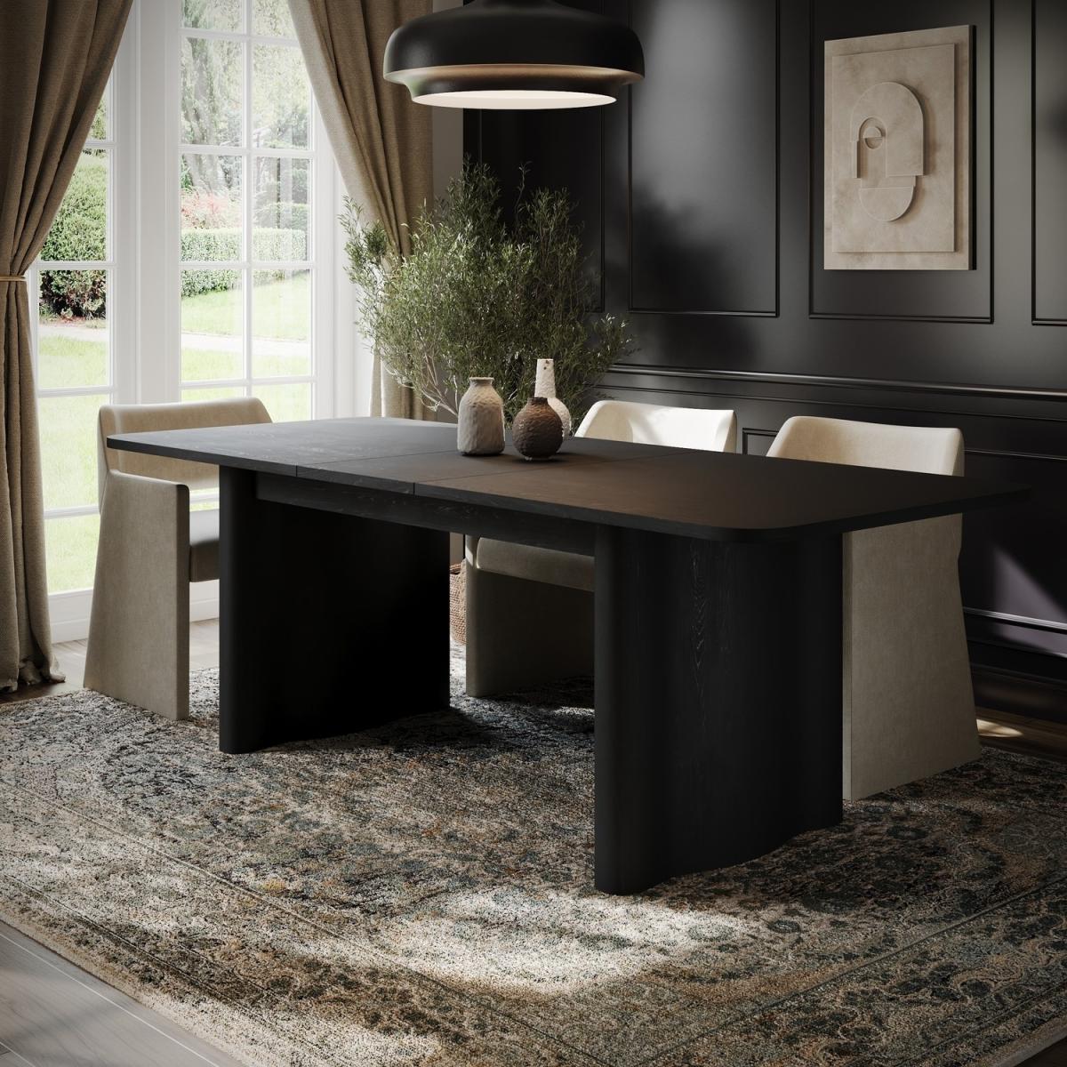 From everyday dinners to dinner parties, Wave makes it easy to go from 6 to 8 seats in seconds thanks to the hidden butterfly extension. Just lift and fold—no hassle, no drama. The curved wave legs create a striking silhouette, turning this table into a centrepiece even when it’s not in use. Painted black solid oak and oak veneer gives the table a rich, smooth finish with a natural grain that adds depth. The all-black look makes it feel bold yet versatile. Built for daily life, Wave offers a sturdy build with a seamless mechanism that glides into place. Whether it’s family meals or festive get-togethers, it’s ready for every occasion. This rectangular Wave dining table brings style and substance to your dining space. With its bold black finish and sculptural wave-inspired legs, it’s more than just a table—it’s a design statement. The cleverly concealed butterfly extension means you can adapt your setup in moments. Smart, sleek and functional. Please use heat-protective mats & coasters when placing items onto the table to protect the tabletop, clean up any spills straight away as wood is porous and will absorb liquids. Due to the natural characteristics of the wood, each table is unique and may vary to images shown on site. These 'Zoe' dining chairs are sold separately and can be found on our website.
