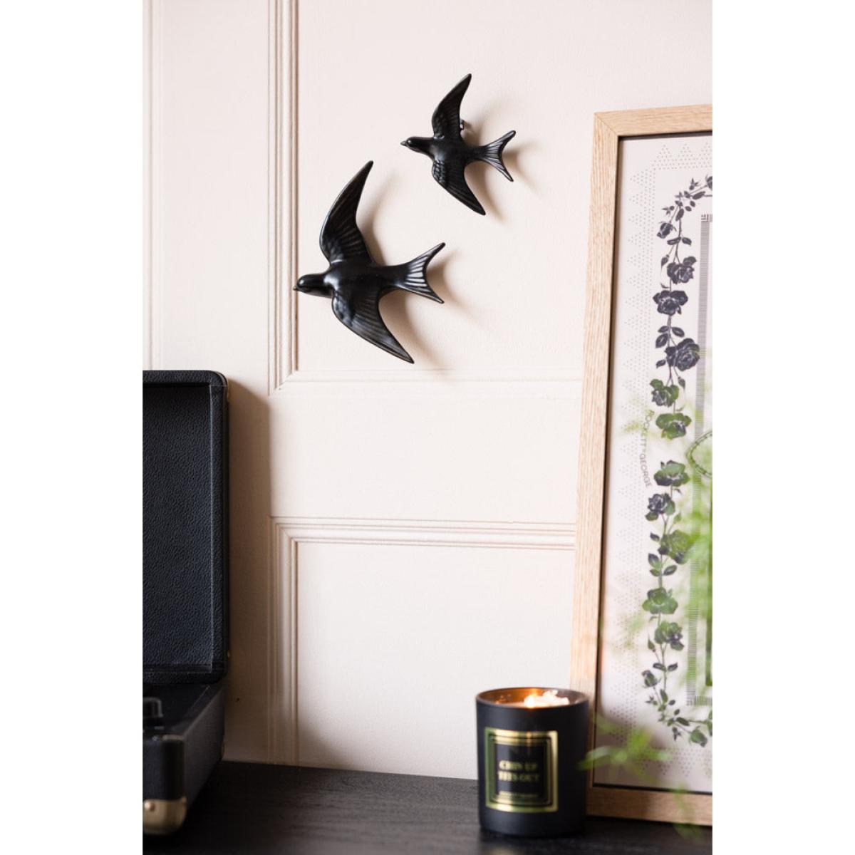 Say hello to the Large Black Swallow Wall Decoration – a bold and beautiful bird ready to take flight across your quirky wall art. Sleek, antiqued, striking, and full of character, this wall art brings instant drama and elegance to any space. Its sculptural shape adds movement and personality – like a little moment of art that makes your walls feel alive. Perfect for giving your wall décor ideas for the kitchen a touch of edge or standing solo as a statement piece, it’s modern, mysterious, and just the right amount of cool. Chic, timeless and totally eye-catching – this swallow is here to steal the spotlight. - Large Black Swallow Wall Decoration - Measures: L12.5cm x W4.5cm x H13.5cm - Materials: Resin