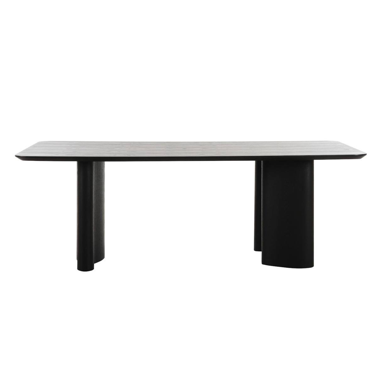 The robust leg design creates a powerful architectural focal point, adding dynamic movement and contemporary edge to any dining space. The large rectangular surface comfortably seats up to eight, offering plenty of room for family meals and entertaining, while this sleek black finish adds sophistication. The smooth, matte black surface delivers a refined yet understated aesthetic that complements a variety of interior styles, from industrial to minimalist. Crafted from high-quality ash veneer, this tabletop combines strength and wear-resistance with a natural wood grain texture beneath the painted finish. The combination of chunky legs and a sleek tabletop make it a statement piece that fits effortlessly in modern, urban, or electric homes. Elevate your dining area with the Troy Black Wooden Dining Table. Featuring strong, sculptural legs and a sleek black finish, this 6-8 seater table offers plenty of room for meals, celebrations, and everything in between. Its modern aesthetic pairs effortlessly with both minimal and eclectic decor styles, making it a versatile centrepiece for your home. These 'Eren' dining chairs are sold separately and can be found on our website.