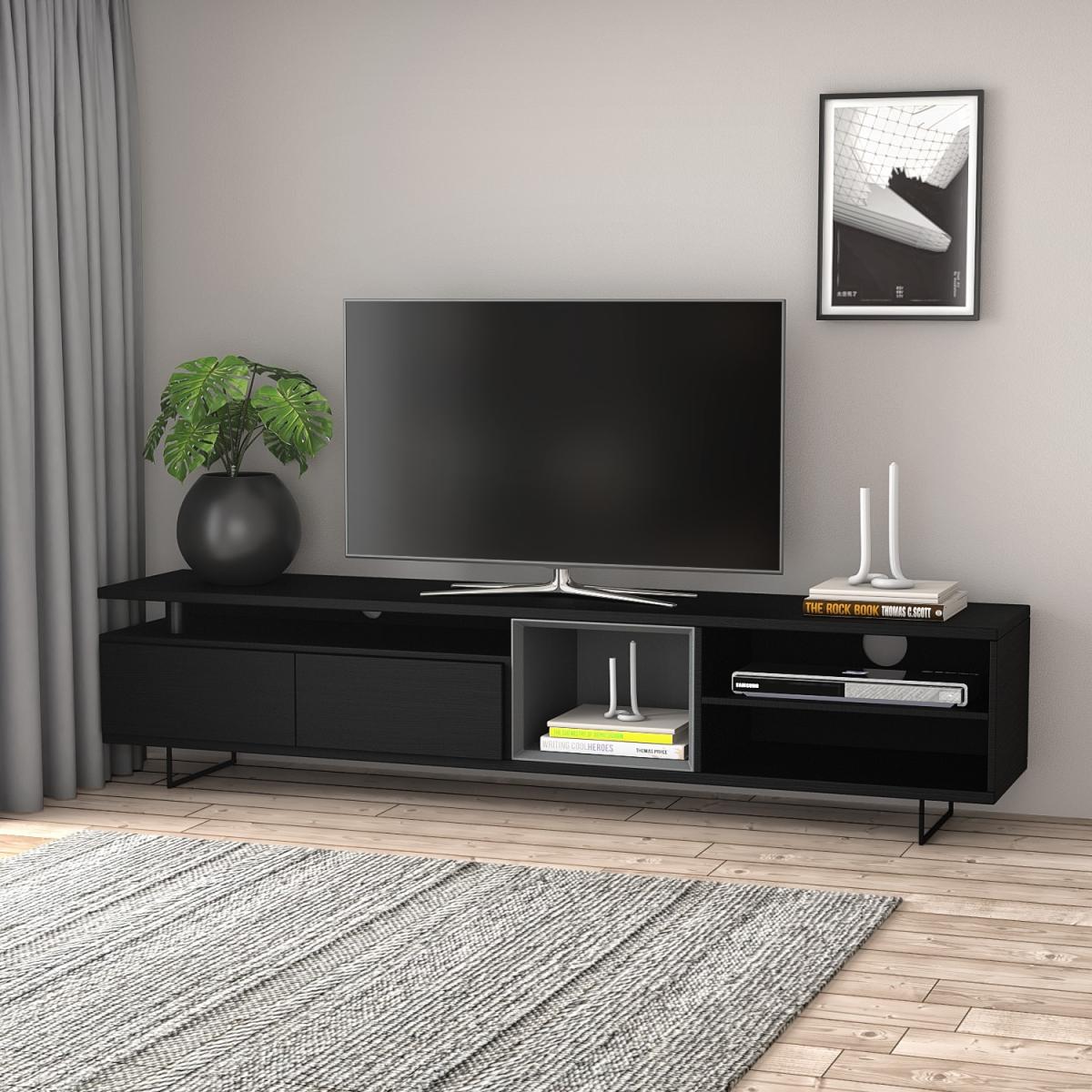 This large, blackened oak effect TV unit will modernise your living room space. There's plenty of space to store media devices, gaming consoles and essentials. With modern dark oak and ski-style legs, this piece will work with any living room.