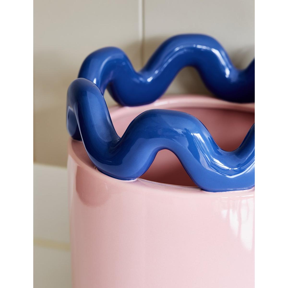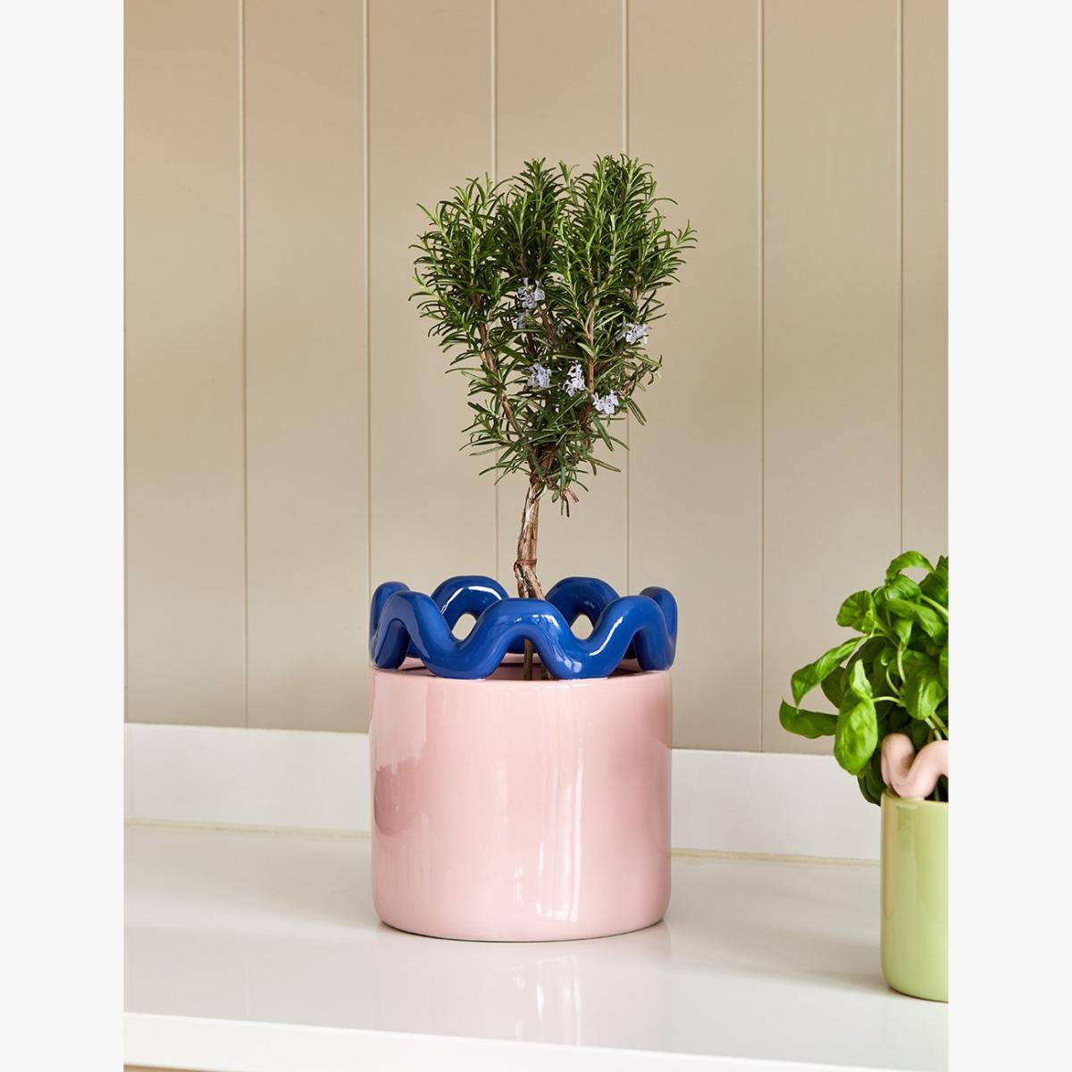Treat your plants to the home they deserve with our Large Blush Pink & Navy Wavy Plant Pot. Crafted from durable stoneware, this plant pot is 22.5cm in height and 20cm in diameter, so your plants will have plenty of space to thrive and flourish. With its stylish navy and pink colour scheme and glossy finish, this planter will beautifully complement your house plants for years to come. Our wavy-top plant pot is also available in a smaller size in a green and pink colourway.