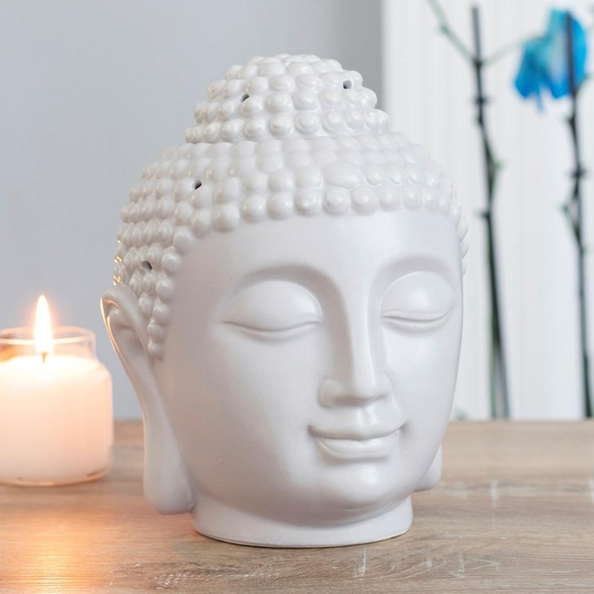 Large Buddha Head Oil Burner Serene and Intricate - Grey