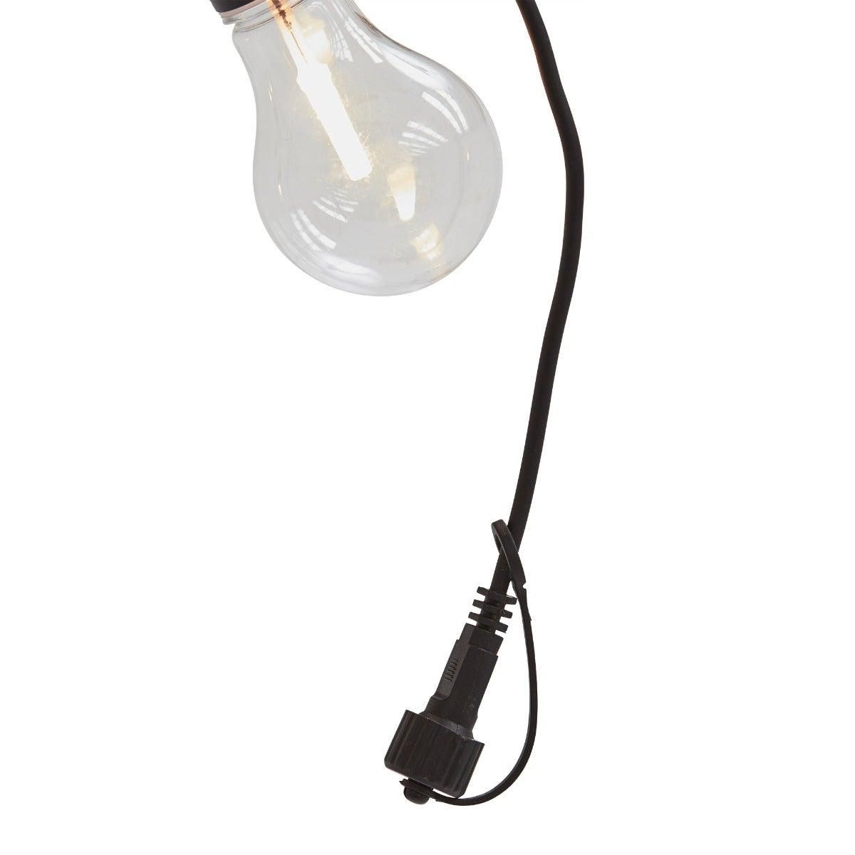 I love this outdoor bulb light for its sleek, contemporary look and timeless black glass finish, which adds a touch of sophistication to any outdoor space. It's perfect for creating a cosy ambiance in gardens, patios, or covered terraces, especially when strung along fences or pergolas. A styling tip would be to use several strands for a layered effect or to combine with greenery and modern outdoor furniture for a balanced, inviting setting. Its understated design makes it versatile enough to suit both modern minimalist exteriors and more rustic, traditional outdoor areas. Practical advice would be to install it at different heights to add visual interest and ensure the bulbs are positioned to avoid direct glare, encouraging a warm, welcoming glow.