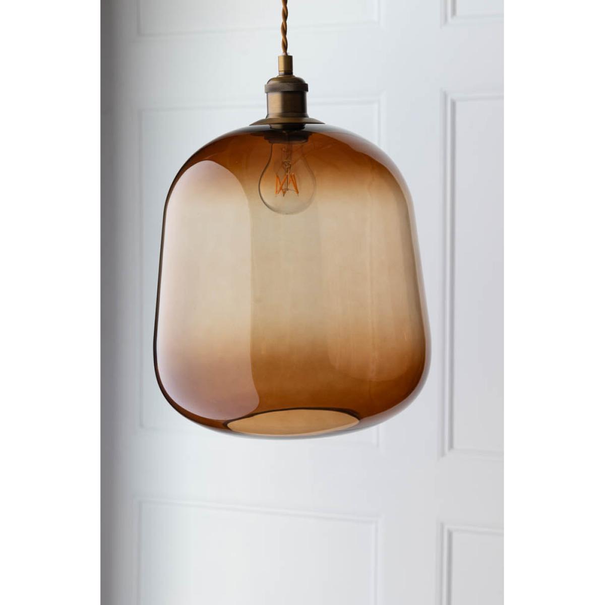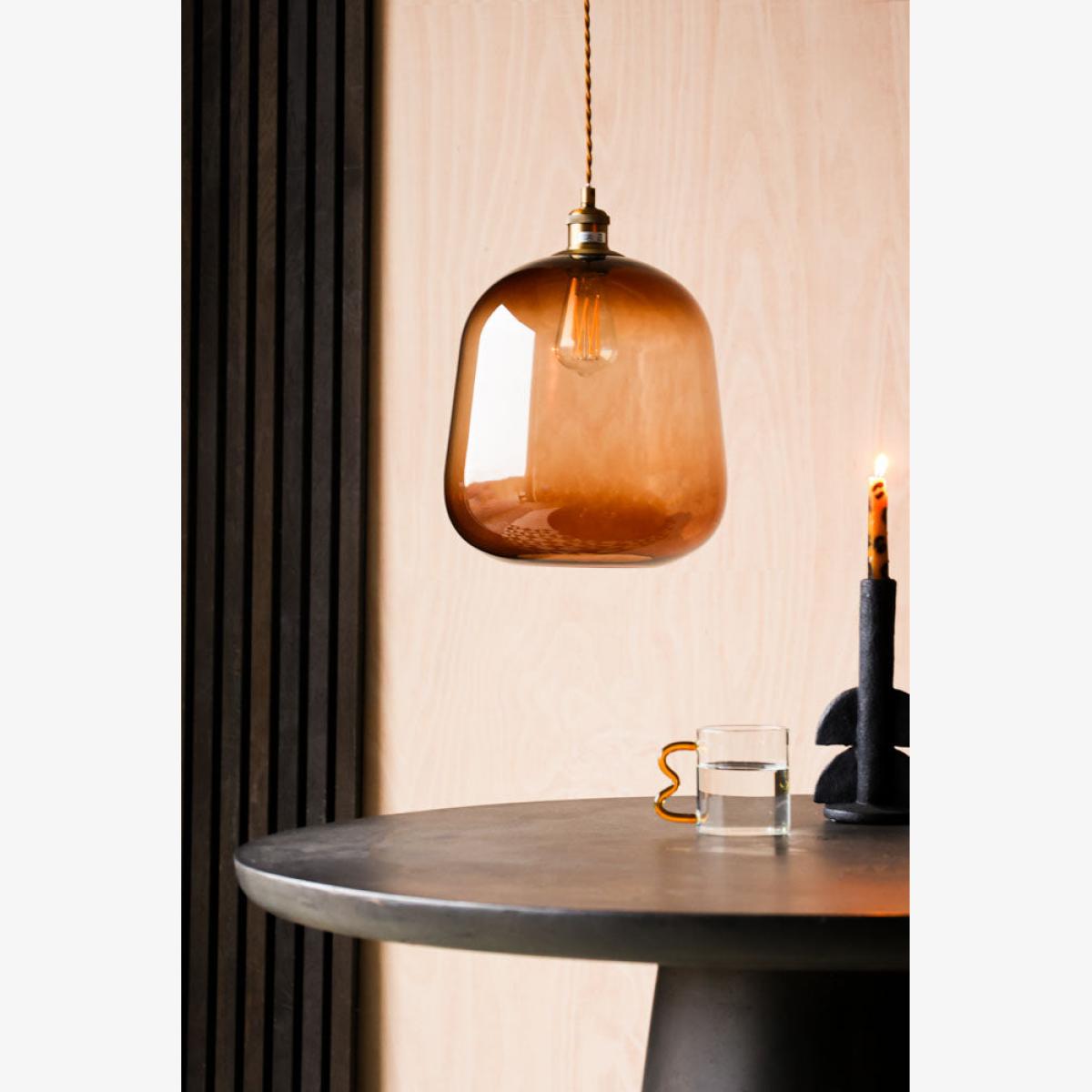 The Large Burnt Butterscotch Glass Ceiling Light introduces beautiful simplicity to your home. With this gorgeous glass pendant light, the pared-back design allows your eye to focus on the sexy sweeping curves and rich burnt butterscotch colour palette. An on-trend earth tone that reminds us of all things sweet, from honey to butterscotch and cinder toffee, the tinted glass creates a warm glow throughout the room. Perfect for the hallway or living spaces, this glass ceiling light looks fabulous against every interior style imaginable, from light and bright rooms to cosy reading nooks painted in midnight hues. The simple things in life are often the most beautiful, and the Large Burnt Butterscotch Glass Ceiling Light is a prime example. Celebrating the magic of an earthy colour palette, the rich butterscotch hue introduces warm, peaceful, zen vibes to your home and sets the scene for cosy moments of me-time – you could say it’s almost good for you!- Curved glass curved ceiling light in burnt butterscotch - Includes antique brass ceiling rose and braided flex - Measures: H40cm x Dia. 29cm - Total height including flex – 142cm, minimum height (adjustable) - 48cm - Requires an E27 LED 10W max bulb