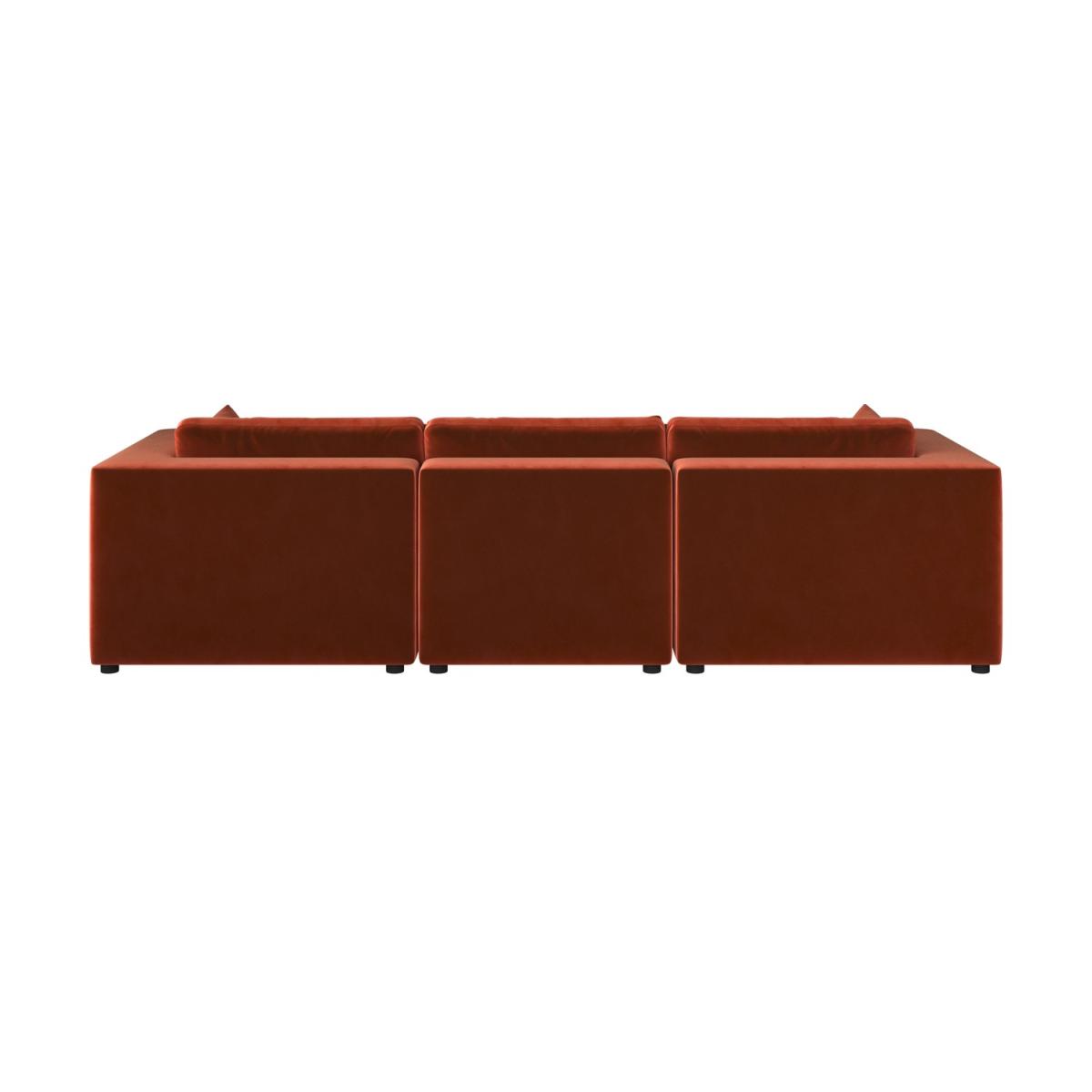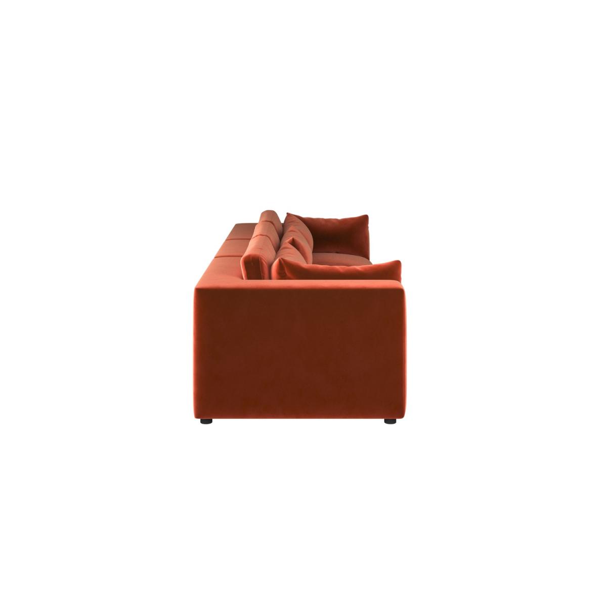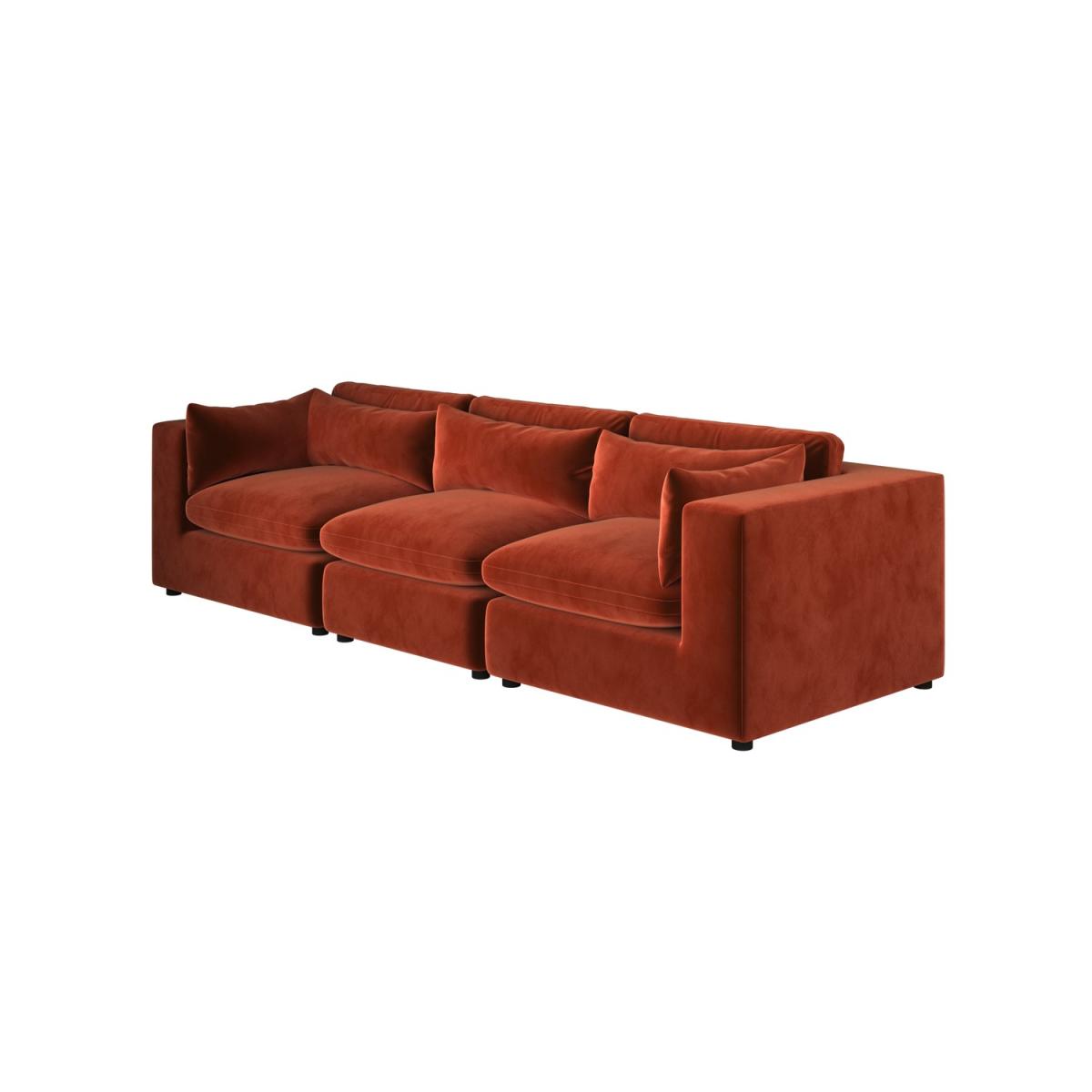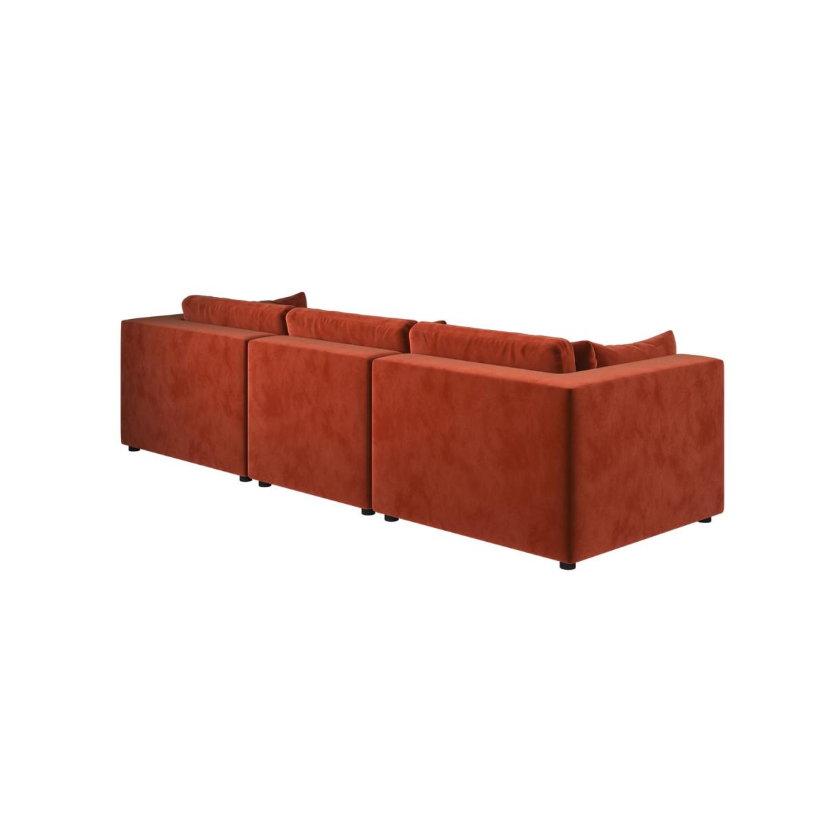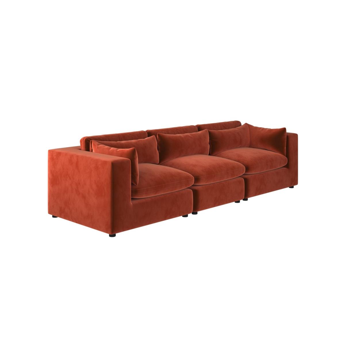 Foam filled Reversible Back Cushions Scatter Cushions Included This large 4-seater sofa features clean lines and a sleek, minimalist look that will blend perfectly with any modern interior. Soft, durable velvet in burnt orange adds a luxurious, modern touch. Comfortable seating for up to four people, ideal for family use or entertaining guests. Foam-filled cushions offer long-lasting comfort and excellent support for a cosy seating experience for hours. Completely removable back and seat cushions for easy cleaning and maintenance. Simply slot the pieces together for quick setup. Add a touch of modern luxury to any living room with the Hudson sofa, with space to comfortably seat up to four people. Plump foam-filled seat and back cushions provide maximum comfort, and the covers are removable for easy washing. It’s easy to assemble too; simply slot the pieces together. The back and seat cushions can be removed for regular plumping, ensuring your sofa maintains maximum comfort.