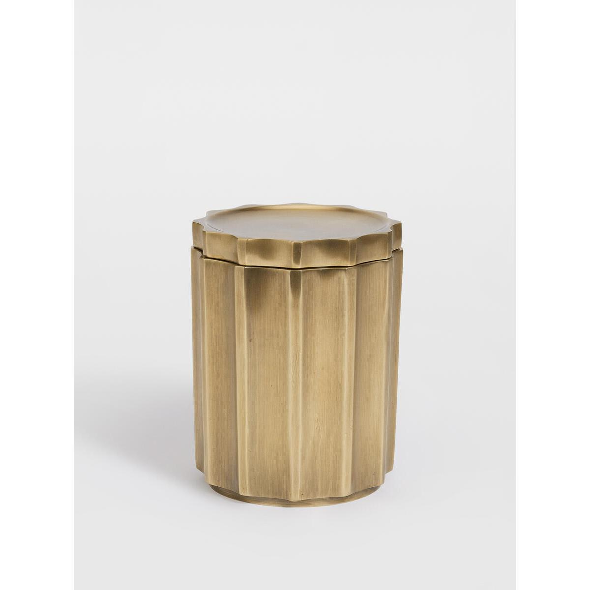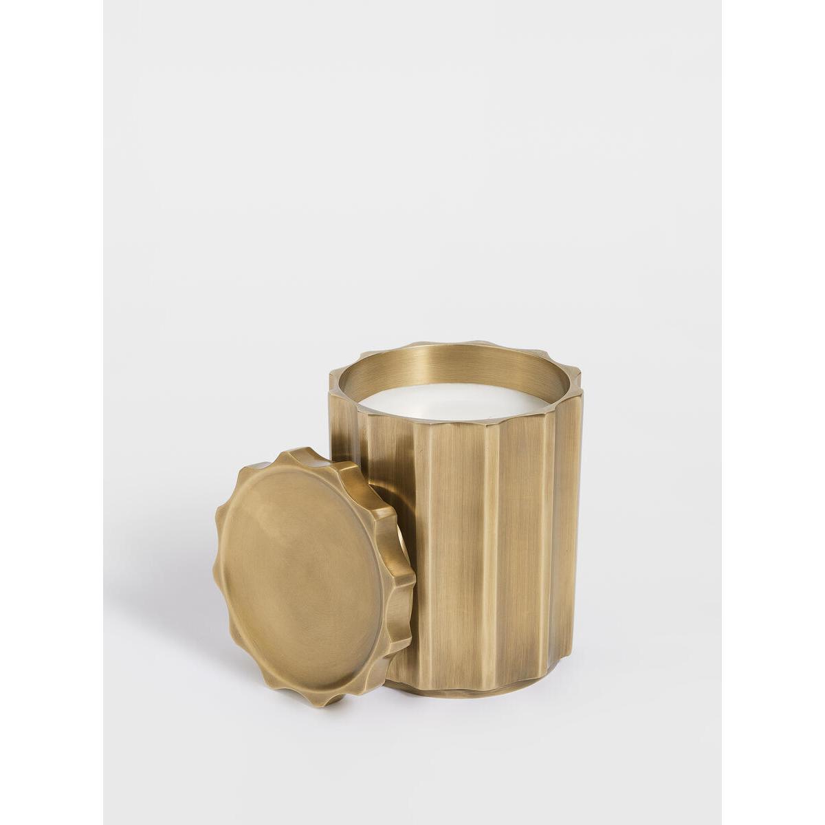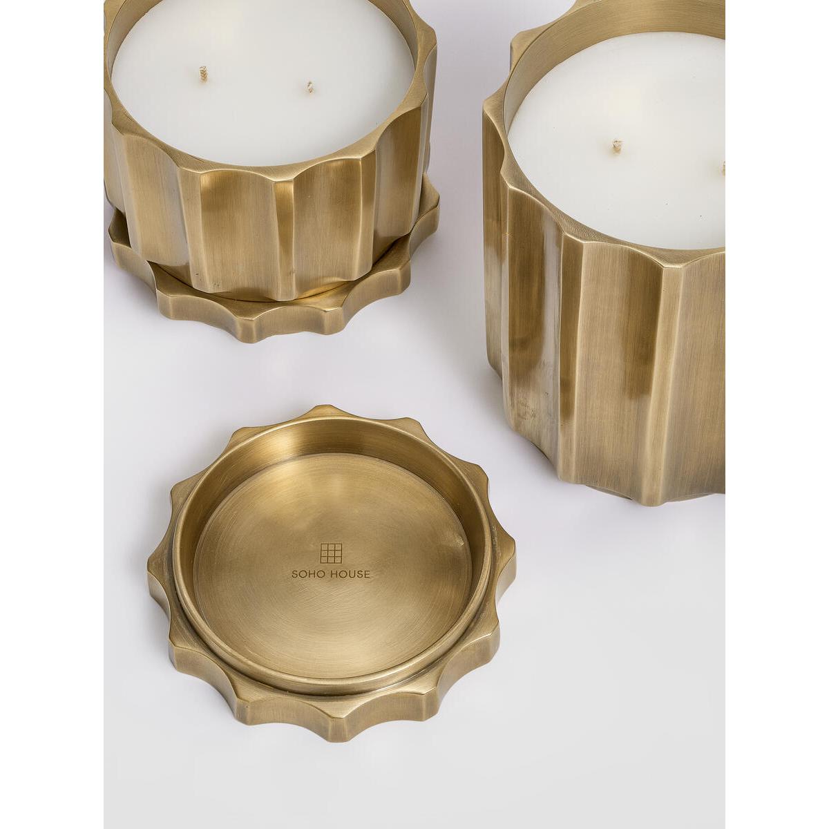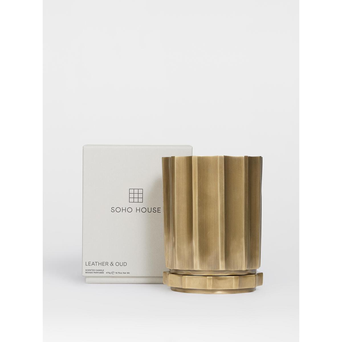 The large Cavendish candle is crafted from brass that willnaturally patina beautifully over time. It takes inspiration fromour Hong Kong House and the rich jewel tones seen throughout theinteriors. Use it to fill the air with our Leather & Oudfragrance for a deeply aromatic scent that's reminiscent ofnightcaps at Soho House Hong Kong. Scent notes. Top: Oud. Middle: Patchouli. Base: Sandalwood. Large brass candle. Infused with our Leather & Oud fragrance. Solid cast. Hand-poured in England. Vessel can be reused for storage. Bespoke fragrance created by an expert perfumer for Soho. House. Inspired by Soho House Hong Kong.