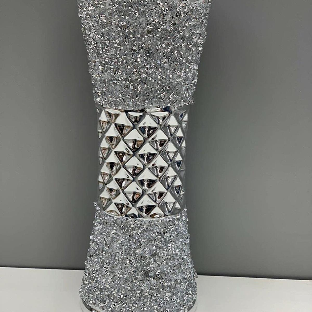 Ceramic Silver Mirror Diamante Bling Sparkling Home Decoration Flower Vase. Beautiful decorative sculpture, Lifelike appearance reflects our great modelling skills and extreme demands. This sculpture has adopted scentless environmental paint, and it will not fade nor peel off, the appearance is easy to attract. This classic hand-made craft will be a great choice for your home decorations. Moreover, our Ornaments are perfect for bringing positivity into your home, adding a fun atmosphere, and putting a joyful smile on your face.