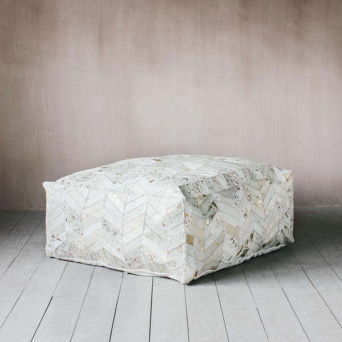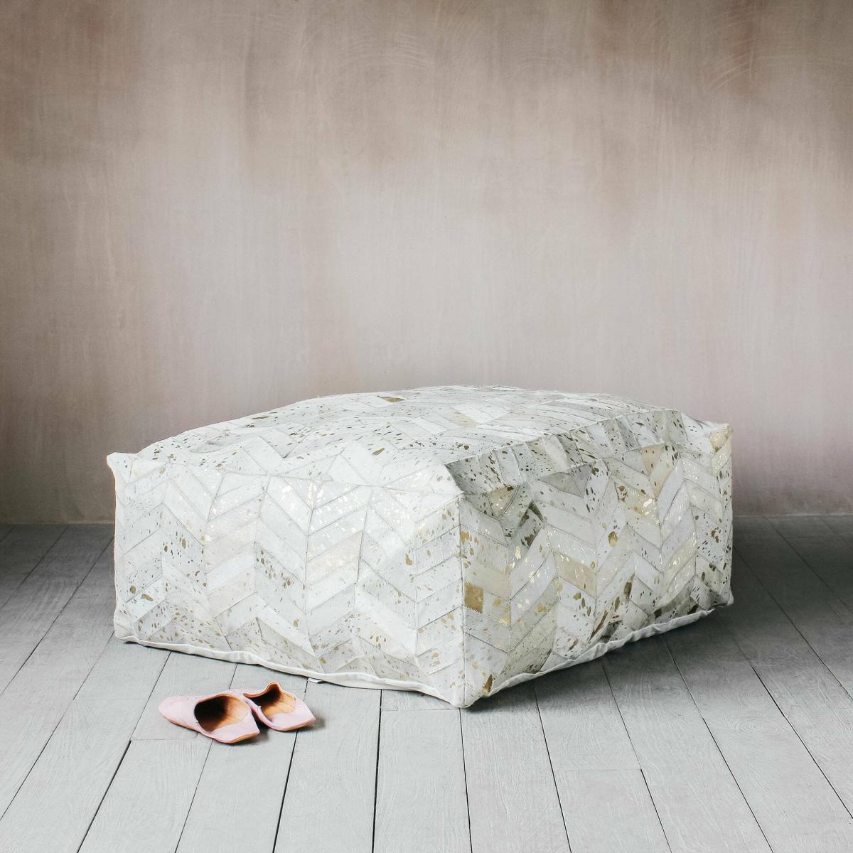 Our chevron metallic cowhide pouffe is exclusive to G&G and makes an eye-catching home accessory, handmade by talented artisans with gold foil details and now available in a large size.