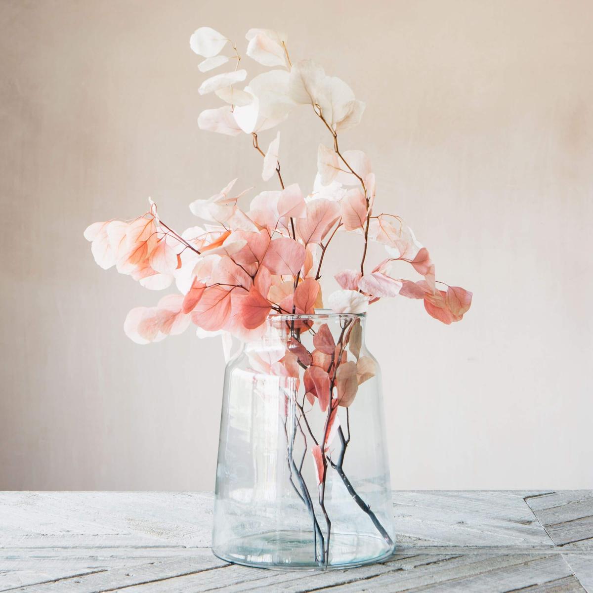 I really like the large clear vase for its effortless versatility and clean aesthetic. It works well in both contemporary and minimalist interiors, providing a sleek backdrop for bold floral displays or even showcasing simple single stems for a more understated look. This vase's transparency allows for creative styling, such as pairing with colourful blooms or using it as a standalone sculptural piece. Practical tips include filling it with a few large stems for impact, or layering with other vases of different heights and textures for a more curated display. It’s a practical, timeless option that elevates everyday decorating.