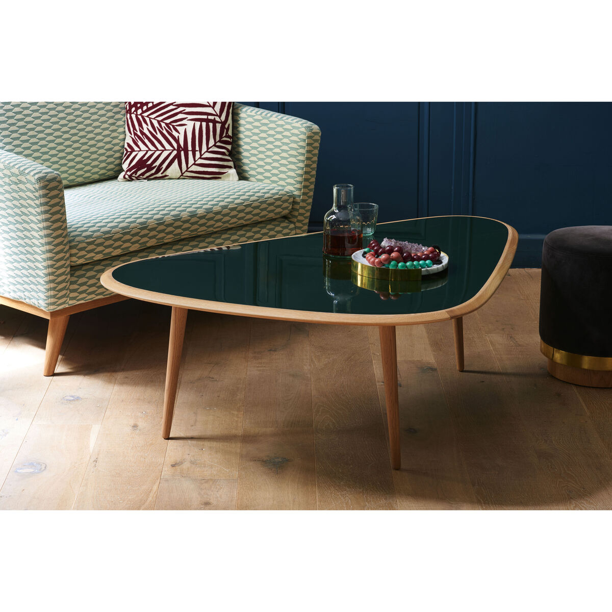 With its slender tripod base and curves, this coffee table is inspired by fifties elegance. The bold curves of its bean-shaped top display organic forms inspired by Scandinavian nature. To create this collection, British designer David Hodkinson took inspiration from the 50s and 60s, and in particular Scandinavian design and its legendary designers such as Finn Juhl and Alvar Aalto. This vintage style coffee table combines solid oak with beautiful touches of colour in traditional lacquer that give it brightness and modernity. Hand-made, this table requires meticulous workmanship and irreproachable know-how to obtain these deep and ultra-brilliant colours through the application of successive layers of traditional lacquer. The oak contours of the top emphasise the organic shape and contrast with the gloss of the coloured lacquer. The Red Edition coffee table comes in a wide range of colours and trendy materials and so adapts to all types of interiors. Available in 2 sizes, Red Edition coffee tables allow infinite combinations in pull-out mode. In Small version, it can also be used as a bedside table or end of sofa. Red Edition coffee tables are also perfect in a child's room since their bean shape has no dangerous corners.