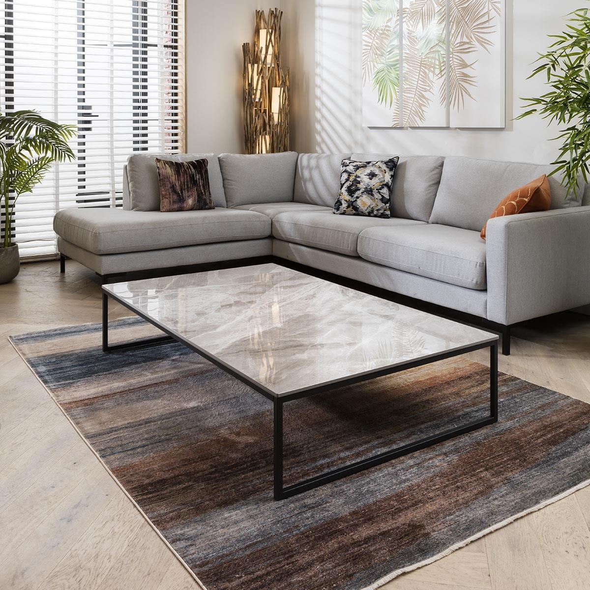 A modern coffee table with a perfect blend of style and functionality. This low-profile white coffee table is designed to elevate your living space with its sleek and contemporary aesthetics. Crafted with a slim, 145cm long top, this table offers ample surface area for placing your essentials or showcasing decorative items. The table features a captivating grey ceramic tabletop that exudes sophistication and elegance. Its very durable surface is ideal for serving drinks, snacks, or displaying your favorite coffee table books. The black powder-coated minimal metal base not only provides sturdy support but also adds a touch of edgy charm to the overall design. With its modern minimalistic appeal, this coffee table effortlessly complements any interior decor, whether it's a cosy living room or a chic office lounge. The premium design and build quality ensure longevity and durability, making it a reliable centerpiece for years to come. Embrace the perfect union of style and functionality with this exceptional coffee table, destined to enhance the ambiance of your space. W145cm D90cm H30cm Large Grey Coffee Table with Metal Base Premium Polished Grey Ceramic Top