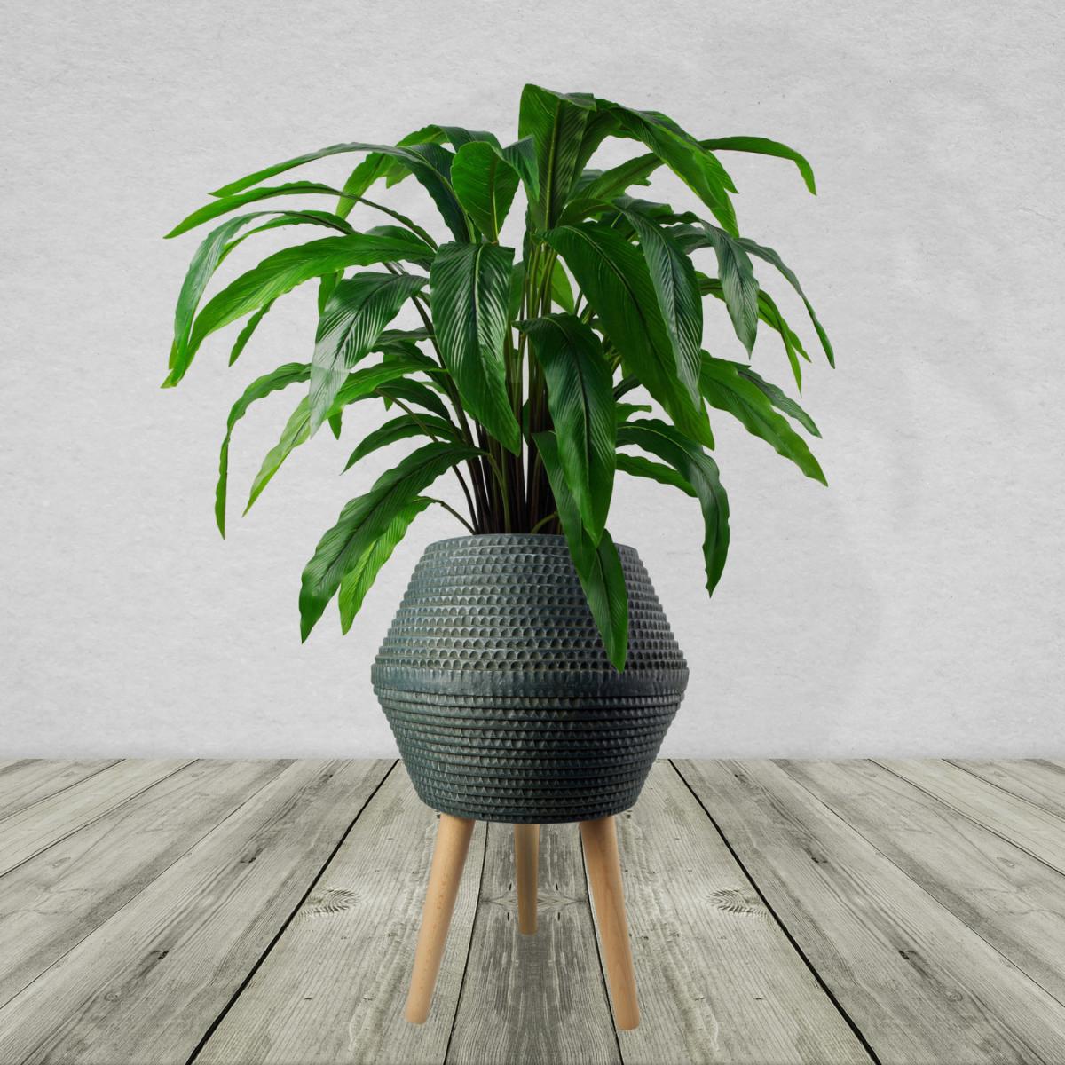 Large fibreglass composite planters, hand finished in a rustic style. Available in a range of designs and sizes. Large planter ideal for either artificial plants or real ones - any plants pictured are for illustration purposes only and are not included. We have a full range of suitable plants available to go with this planter if required.. Designed for indoor use but can be used outdoors in a sheltered position, we recommend protecting from extremes of weather. At the widest point this pot measures 40cm. The top rim has a diameter of 26cm. The inner hole diameter is 21cm, any of our plants with starter pots smaller than this and all our bare stem plants will fit perfectly inside this planter. Legs measure 30cm. Top planter measures 32cm x 40cm. Please see images for a size diagram. No drainage holes so suitable for watering indoor plants. Intentional Rustic finish. Comes requiring minor assembly by screwing on legs - the legs are double threaded so by twisting the bolt the opposite direction you can extend or reduce the length of the screw part that fits into the planter. Material fibreglass composite.
