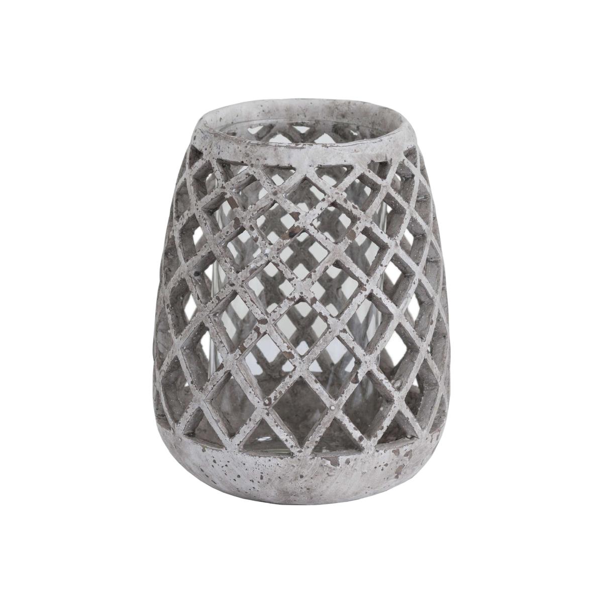 Large Conical Ceramic Lattice Hurricane Lantern - Stone