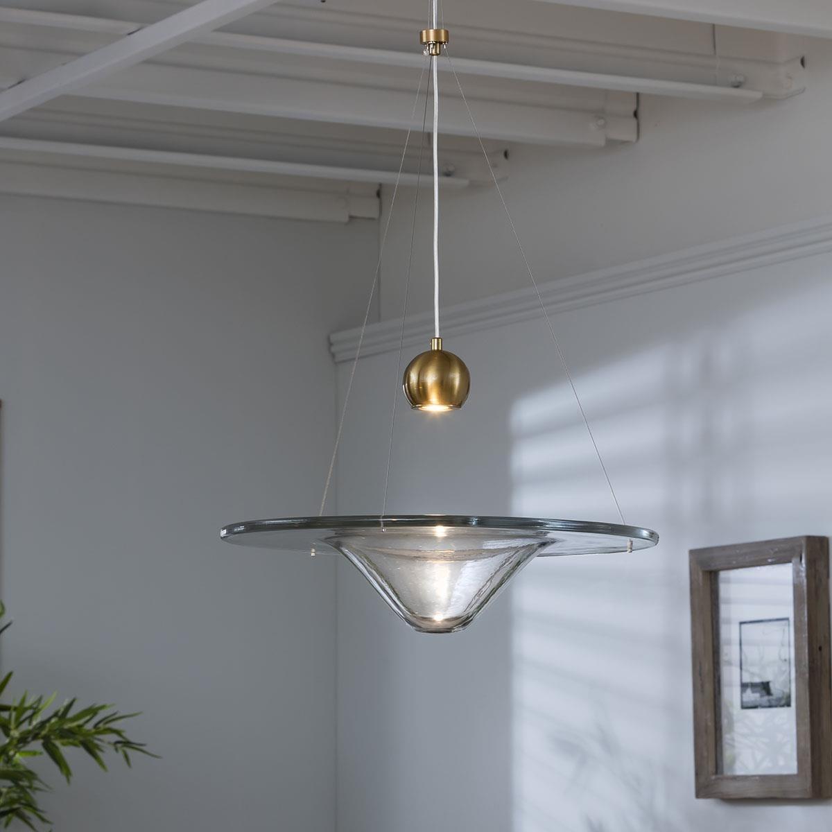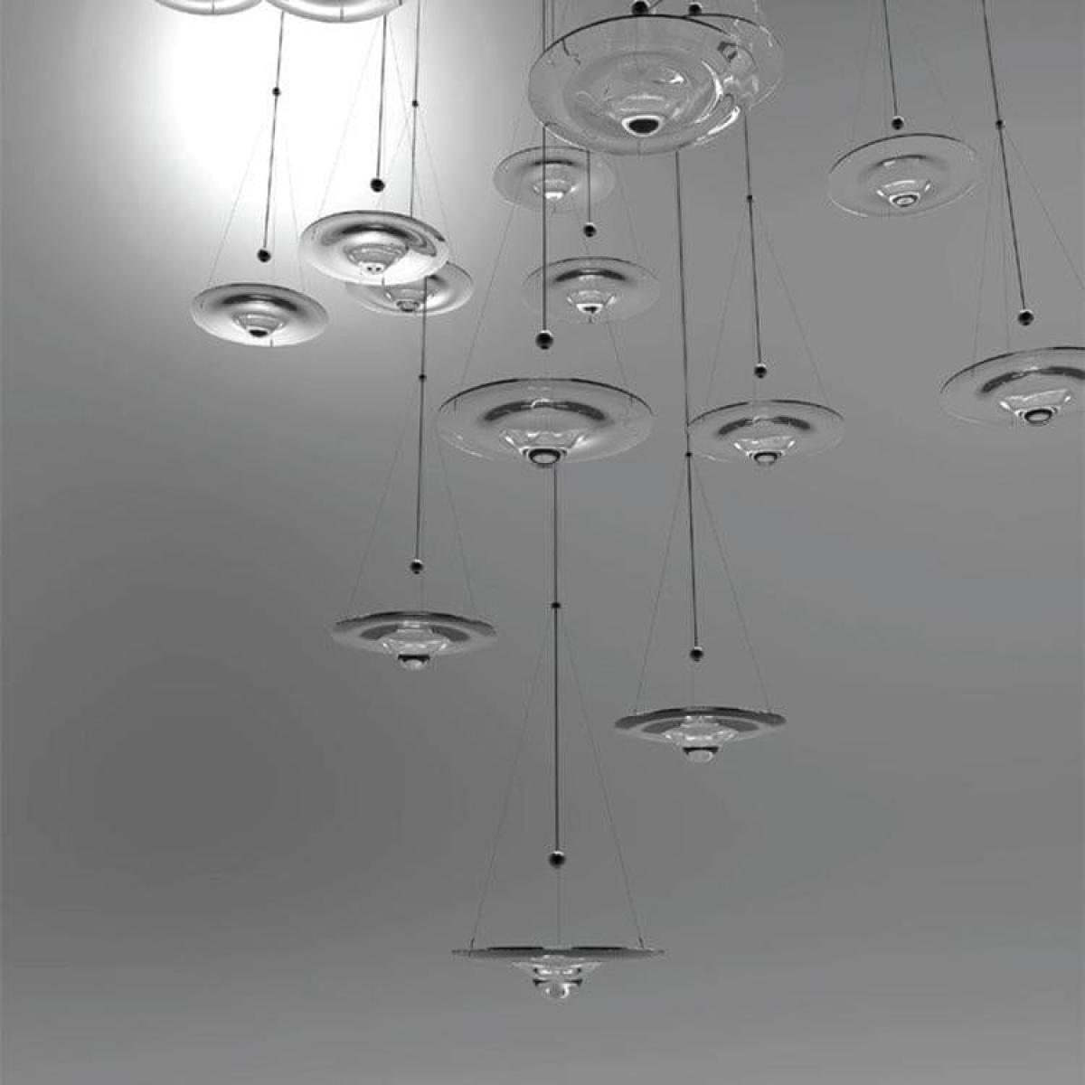 The Quatropi Modern Staircase Chandelier offers a glamorous lighting array as the hanging convexed glass disc has a high refractive index that produces lots of multi-directional light creating a gorgeous and elegant atmosphere. The Modern Staircase Glass Chandelier has a large ceiling light fixture from which the glass disc is suspended. Add a modern look and gorgeous lighting to your interior. Self-assembly required. This fitting has an intricate design and should be assembled by someone that is very famililar with lighting components and self-assembly furniture. This pendant is sure to be a standout feature. LED Lightsource Power: 3W CCT: 3000. K W45cm D45cm H0cm Modern Design Premium Quality Furniture