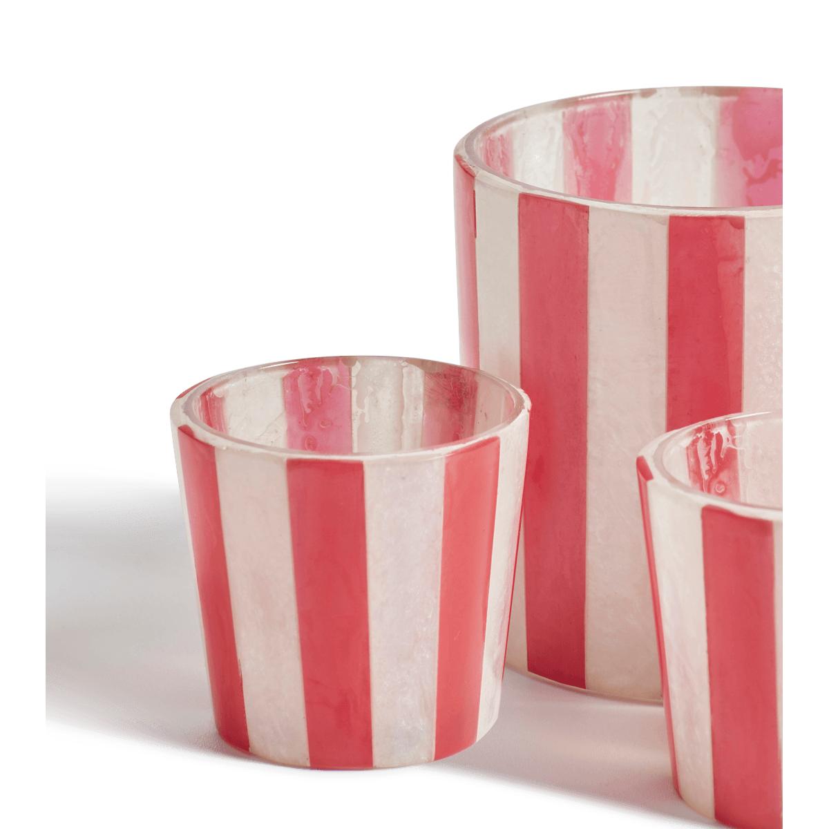 The large Cormack candle holder in raspberry offers a bold, playful touch to a variety of interior styles, especially if you're aiming for a lively, eclectic look or a vintage-inspired vibe. I love how its striking striped pattern injects colour while maintaining a classic charm. It works particularly well in cosy living rooms, on open shelves or as a centrepiece on a dining table, where its size makes it a focal point. Practical styling tips include pairing it with understated accessories to let the pattern shine or creating a monochrome palette around it for a modern contrast. It’s versatile enough to slot into both traditional and contemporary settings, adding colour and personality without overwhelming the space.