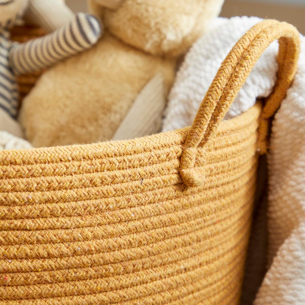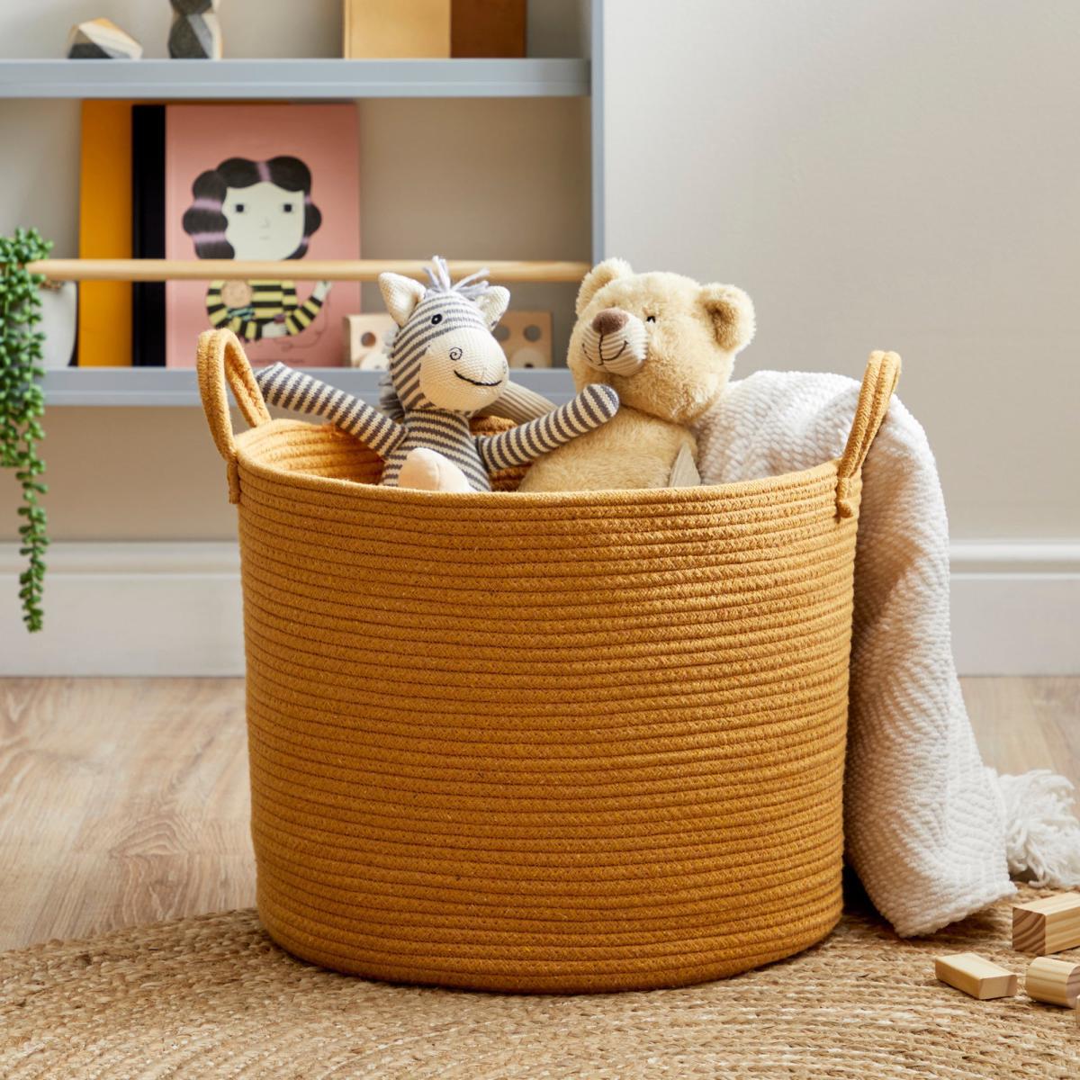 I love this large cotton rope basket in yellow for its versatility and colour pop. It’s perfect for adding a cheerful touch to kids’ rooms or play areas, especially when used to store soft toys or blankets. Its natural texture and bright hue work well in both Scandi-inspired interiors and more playful, eclectic spaces. For styling tips, try pairing it with muted neutral tones to let the colour stand out, or use it as a statement piece in a corner to keep clutter at bay. Due to its generous size, it’s also practical for larger storage needs, making it both functional and visually appealing.
