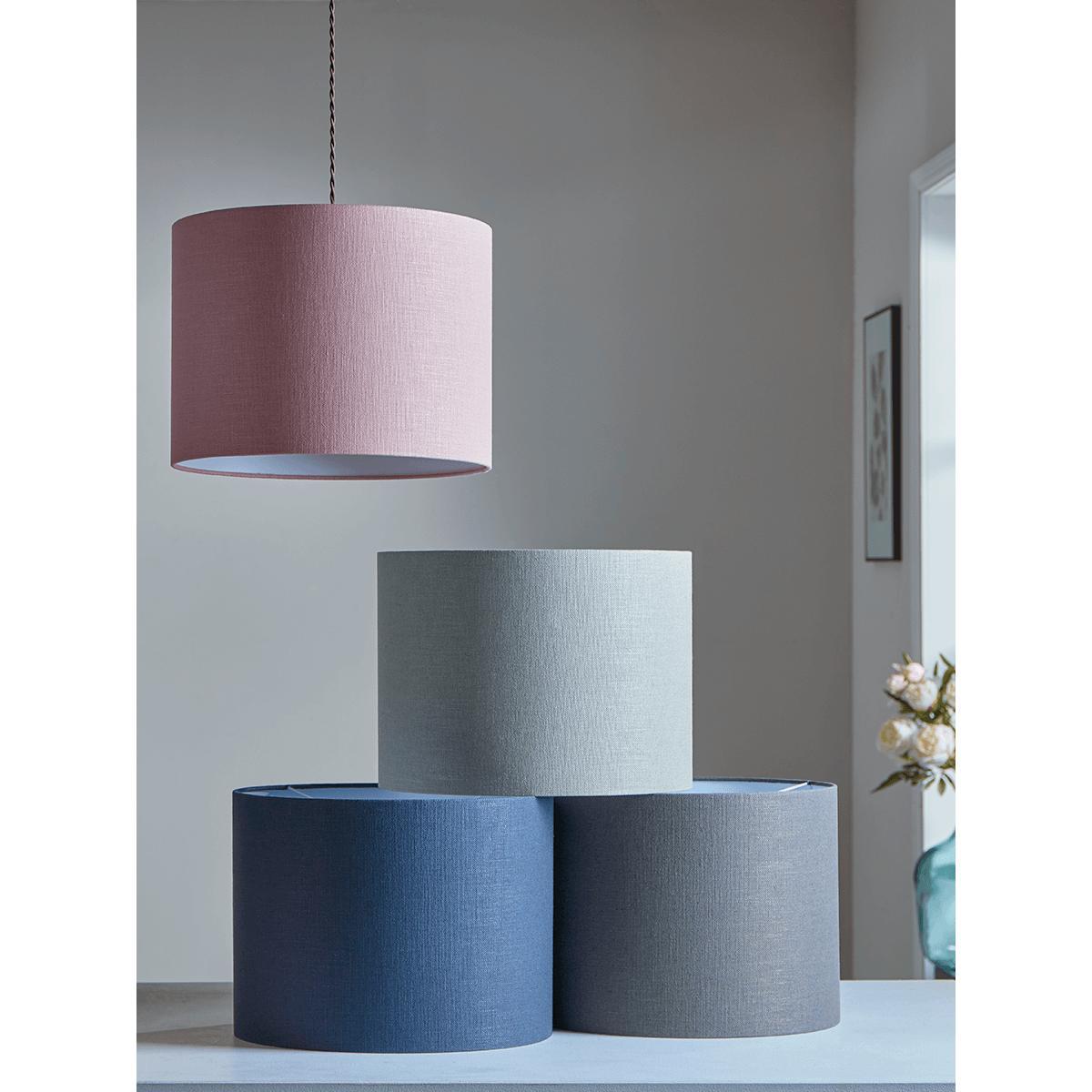 Bring a touch of elegance to your home with our Large Cotton Shades. The shade is carefully crafted from cotton and features a white inner that will radiate a soft glow in your living space. Our stylish and versatile lampshade will make an eye catching addition to your favourite table lamp or ceiling pendant. These shades are available in 4 colours, Pale Blush, Eau de Nil, Soft Grey and Deep Navy.